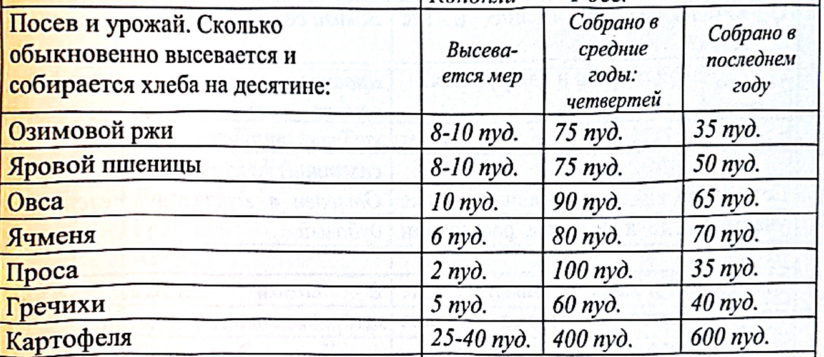 15. Сколько десятин было засеяно в последнем (таком-то) году каким хлебом