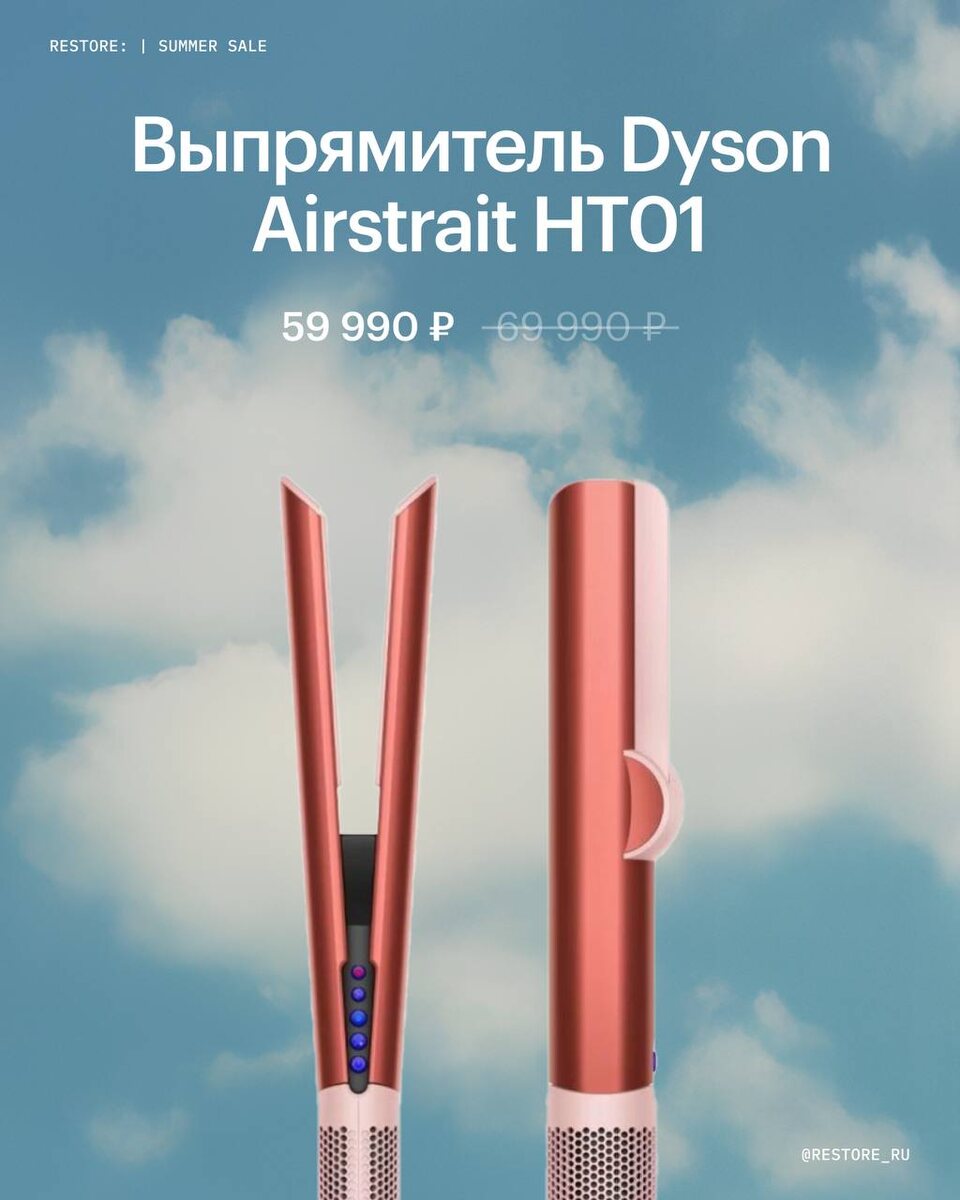 Dyson в списке желаний? Летние желания проще исполнять на Summer Sale в restore: 💙 Успейте приобрести фены и стайлеры для идеальной укладки, а пылесосы и очистители воздуха — для свежести дома. 🌸Выпрямитель Airstrait HT01 🌸Фен Supersonic HD07 🌸Беспроводной пылесос Gen 5 Detect SV-23 🌸Очиститель воздуха Air Purifier TP10 🌸Очиститель воздуха Air Purifier HP10