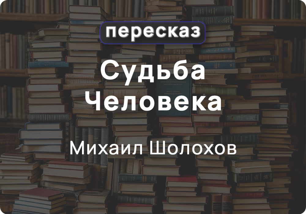 Жанр: рассказ. Дата написания: 1956г. Дата издания: декабрь 1956г. Сюжет основан на реальных событиях. Экранизирован в 1959 году режиссёром Сергеем Бондарчуком. Всего произведений автора: 181 произведение, включая романы «Тихий Дон»(1928г.) и «Поднятая целина»(1932г.). Рассказ «Судьба человека» повествует о непростой жизни главного героя Андрея Соколова, который прошёл через множество испытаний во время Великой Отечественной войны. Андрей Соколов родился и жил на Кубани. Из-за голода в Воронежской губернии умерли его родители и сестра. Через год он вернулся на родину в Воронеж, где женился на сироте Ирине. У пары родились дети — сын и две дочери. Семья жила счастливо и в достатке. Андрей перестал злоупотреблять алкоголем после рождения детей. Когда началась война, Соколов отправился на фронт. Его провожала вся семья. На фронте он работал шофёром. За год он был дважды ранен, после чего вернулся на фронт. Во время выполнения боевого задания его машина подорвалась на мине. Очнулся Соколов