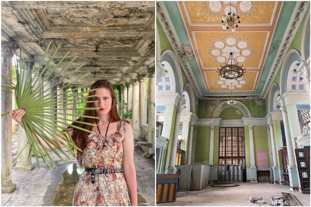 Видно, что крыша у здания течёт, из‑за чего лепнина и штукатурка постепенно обваливаются. И если не устранить протечку и не провести комплексную реставрацию, процесс разрушения будет только прогрессировать.