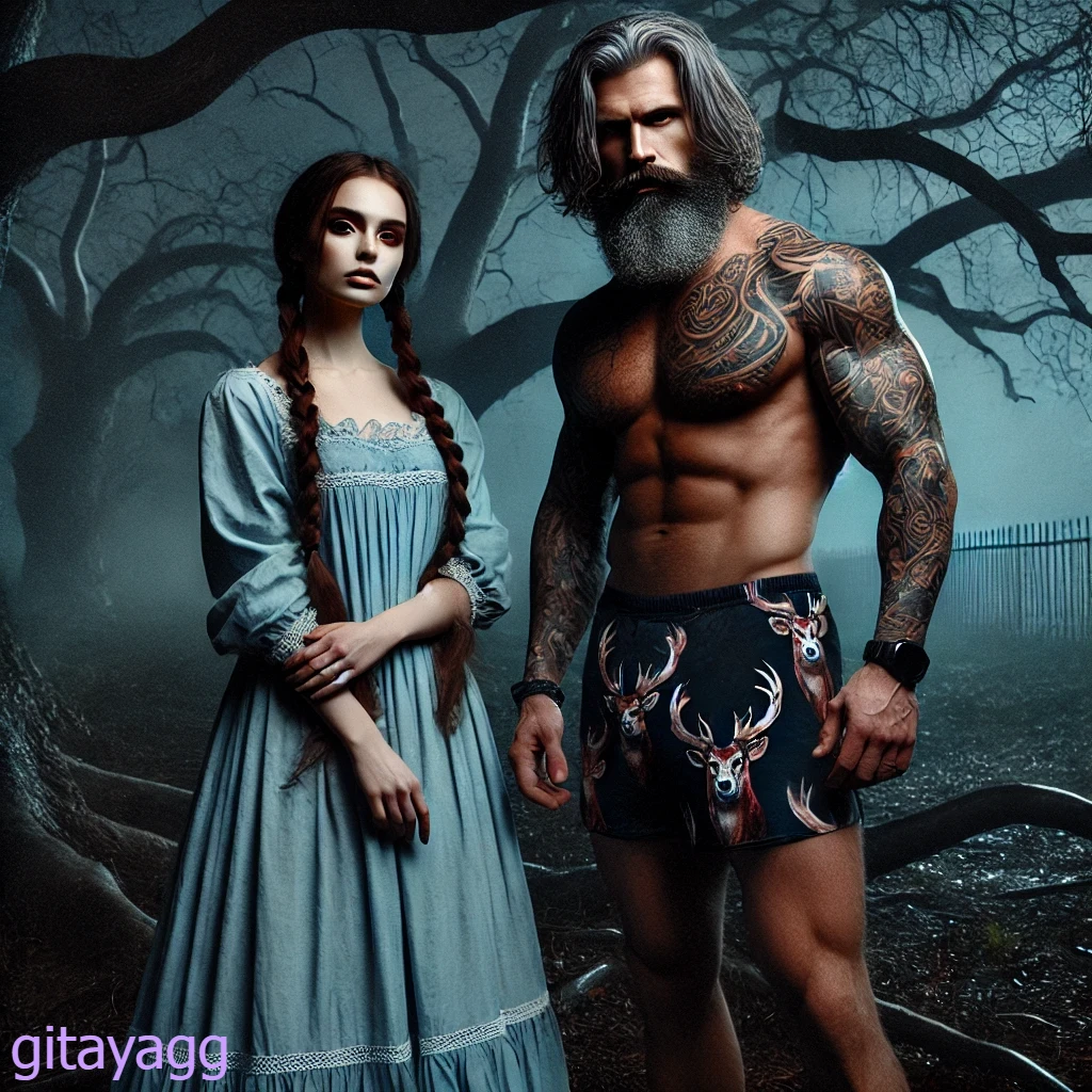 Мощное тело, испещрённое татуировками, было облачено в обтягивающие плавки, седая борода заплетена в косичку, видимо, чтобы не мешала - весь вид говорил, что немолодой мужчина даст фору многим юношам.
