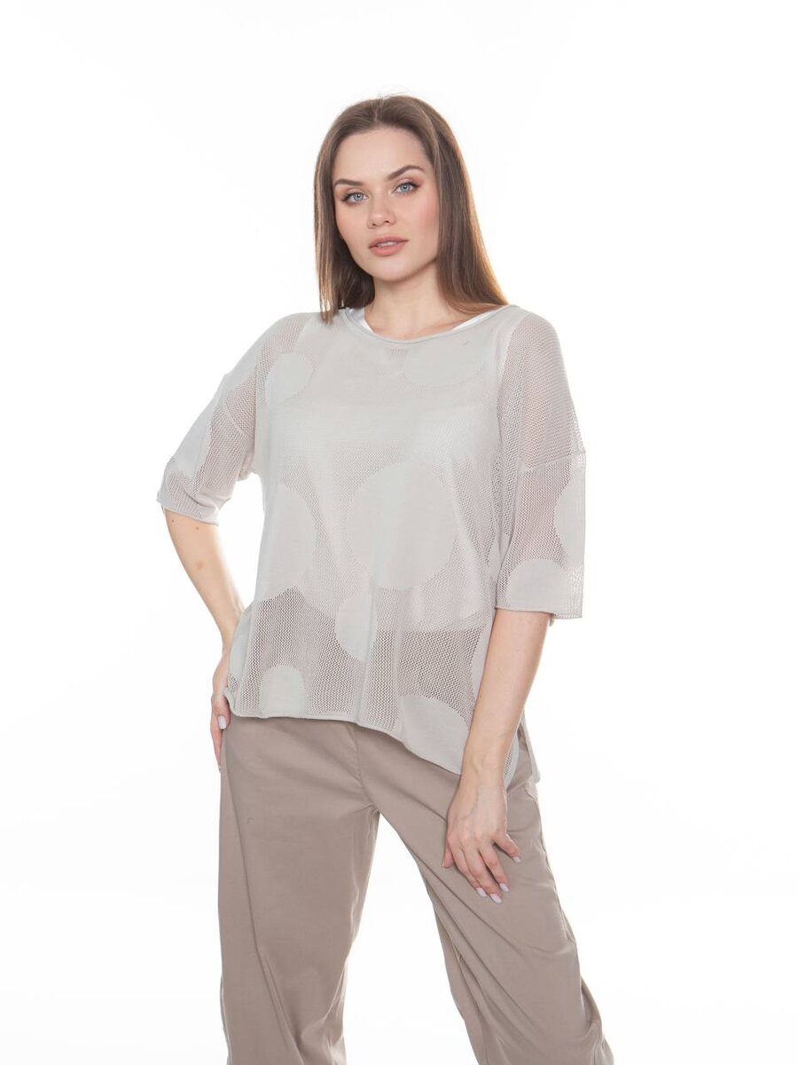 Летний комплект от VETONO — стильное и комфортное решение для теплого сезона. Свободный джемпер-сетка в серо-бежевом оттенке украшен крупным графичным принтом в виде кругов, создавая лёгкий и динамичный образ. Тонкая, дышащая фактура идеально подходит для жаркой погоды, а рукава 1/2 придают образу изящность. В сочетании — бежевые укороченные брюки 7/8 с эластичной посадкой на талии и удобными боковыми карманами. Это универсальная база, которая легко впишется в повседневный или деловой гардероб. Отличный выбор для стильного лета с комфортом. Для оптового сотрудничества пишите нам: 📲-в директ 📲-по номеру 8 800 511 51 95 📲- +7 495 146-92-72 📲Наш сайт — https://sollery.pro ✉️-на почту info@sollery.fashion