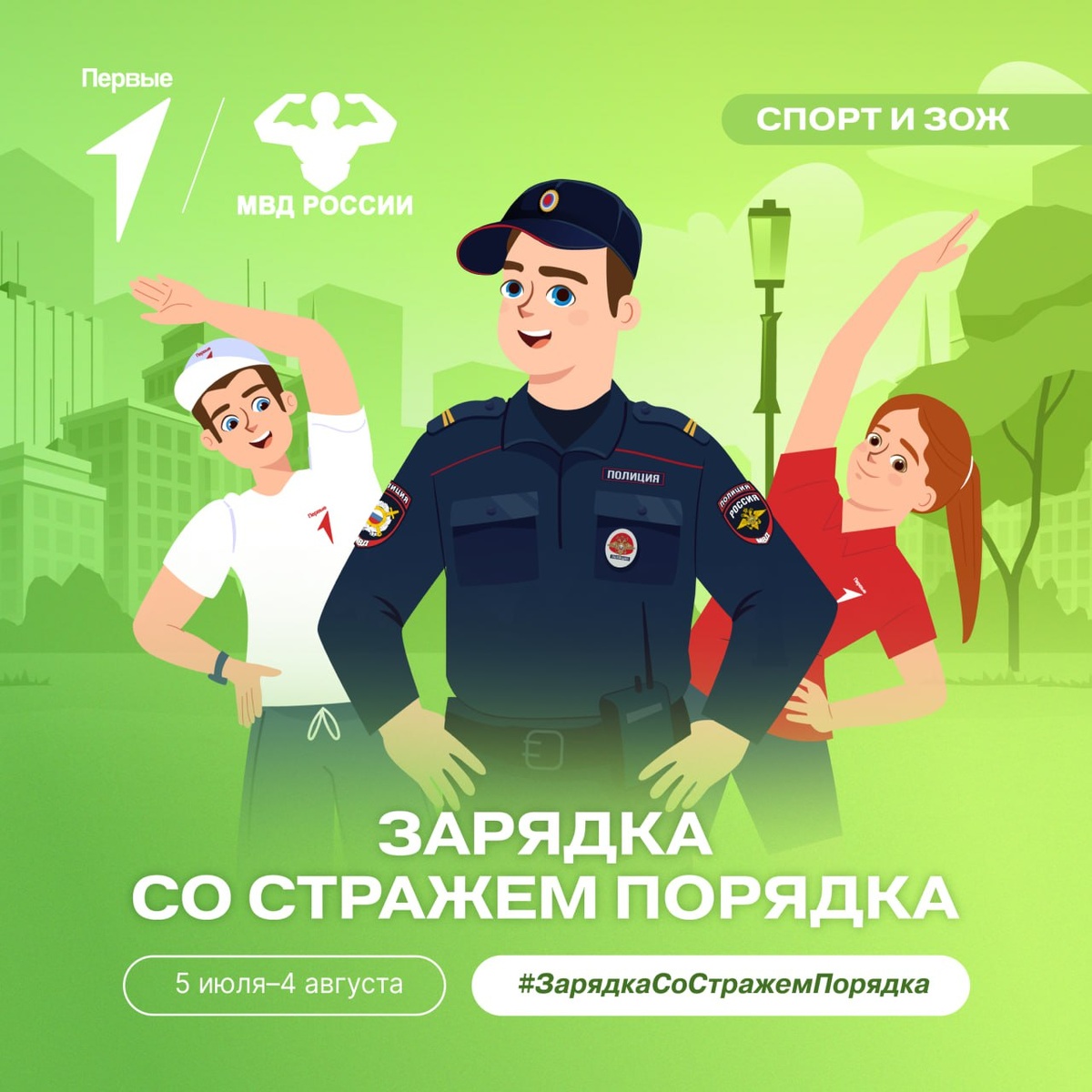 В честь Дня физкультурника Движение Первых вместе с МВД России запускают Всероссийскую акцию «Зарядка со стражем порядка