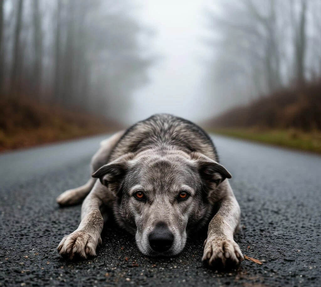 Я обычный пёс Барбос. Бездомная дворняга и я умер. Совсем. Меня только что сбила белая машина. Но, этого никто, кажется, не заметил. Я торопился к знакомой помойке через большую шумную дорогу. Вдруг – рёв мотора, сильный удар, хруст чего-то ломающегося, очень хрупкого, резкая ледяная боль-вспышка. Я медленно куда-то падаю, падаю. Резко исчезают абсолютно все звуки. Становится непривычно тихо. Мне уже совсем не больно. Стою прямо на дороге, среди проносящихся сквозь меня этих шумных больших штуковин и смотрю, как идёт сильный дождь.