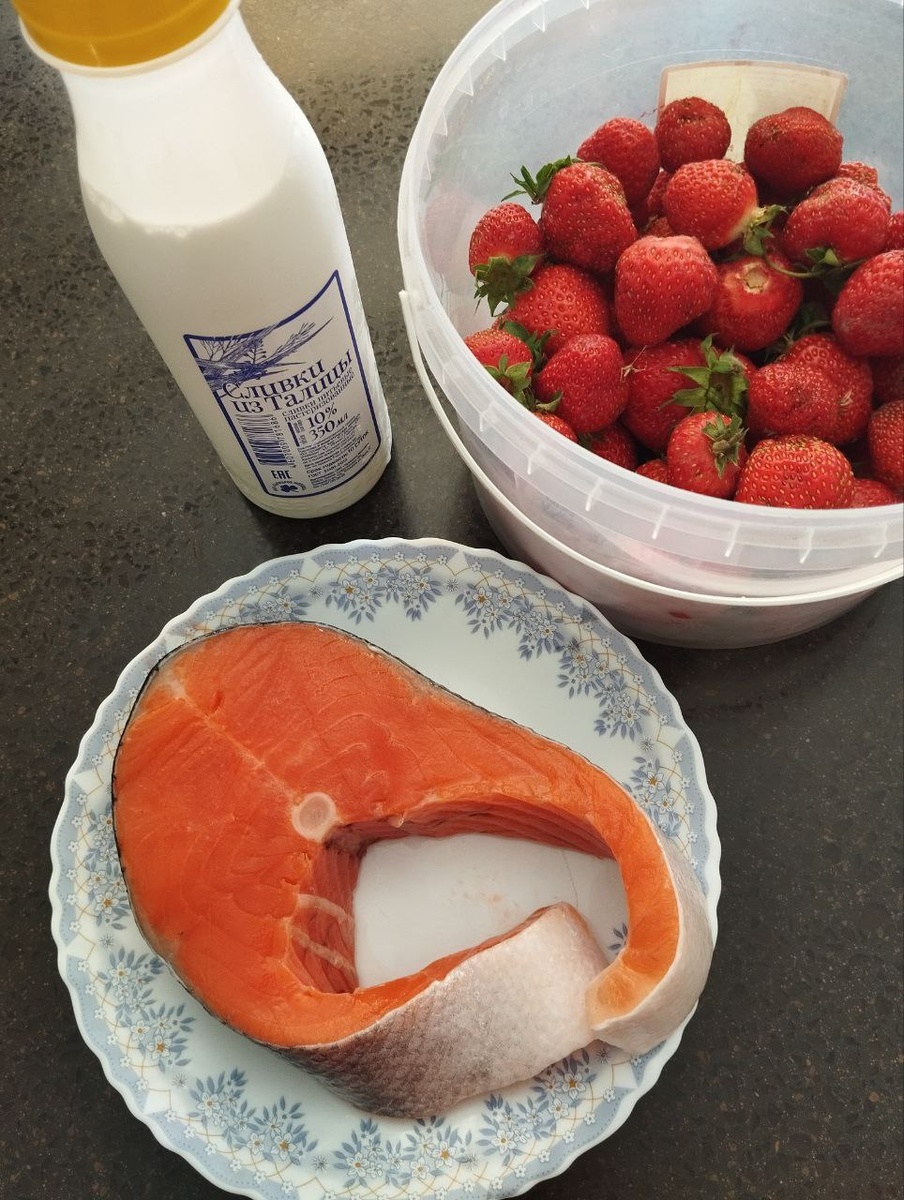 У меня сегодня эксперимент на ужин. Подруга очень хвалила простой рецепт рыбы в сливочно-клубничной заливке. Я люблю и рыбу (у меня нынче кижуч), и клубнику (своя с дачи), и сливки. Так что пробую смело. #личное@anna_evdo30