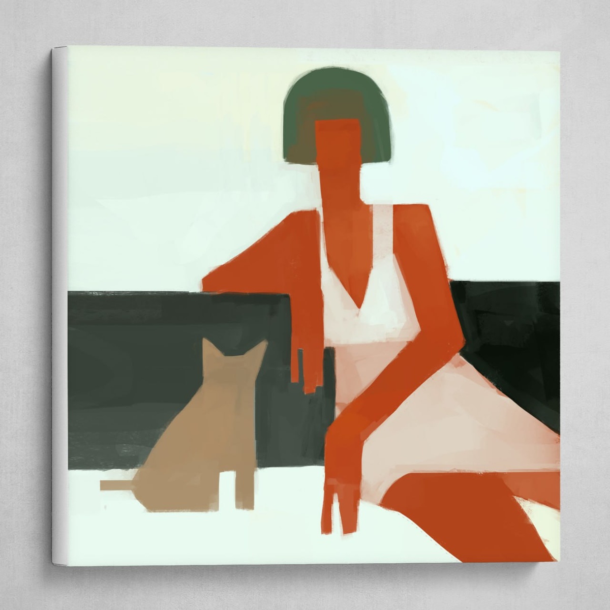 Перед нами женщина с короткими волосами и простым нарядом, сидящая рядом с собачкой. Её поза расслабленная и спокойная, а цвета мягкие и приглушенные. Это изображение передает ощущение уюта и тишины, в котором не нужны слова, чтобы ощутить мир внутри этого пространства. Женщина и собака как будто находятся в своем личном моменте, где время замедляется. Вдохновение приходит через простоту и гармонию, без лишней суеты. Пространство, в котором они находятся, словно безмолвно поддерживает их состояние покоя, наполняя всё вокруг мягким светом и приглушенными оттенками. 🌿🐾