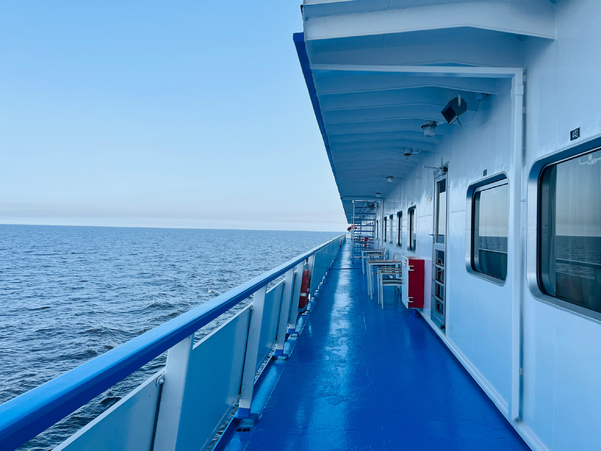 Теперь предлагаю одеться потеплее и пойти на палубу. Я ездила в июне, но на воде всегда холоднее, чем на берегу, поэтому важно тепло одеваться, чтобы не простыть.