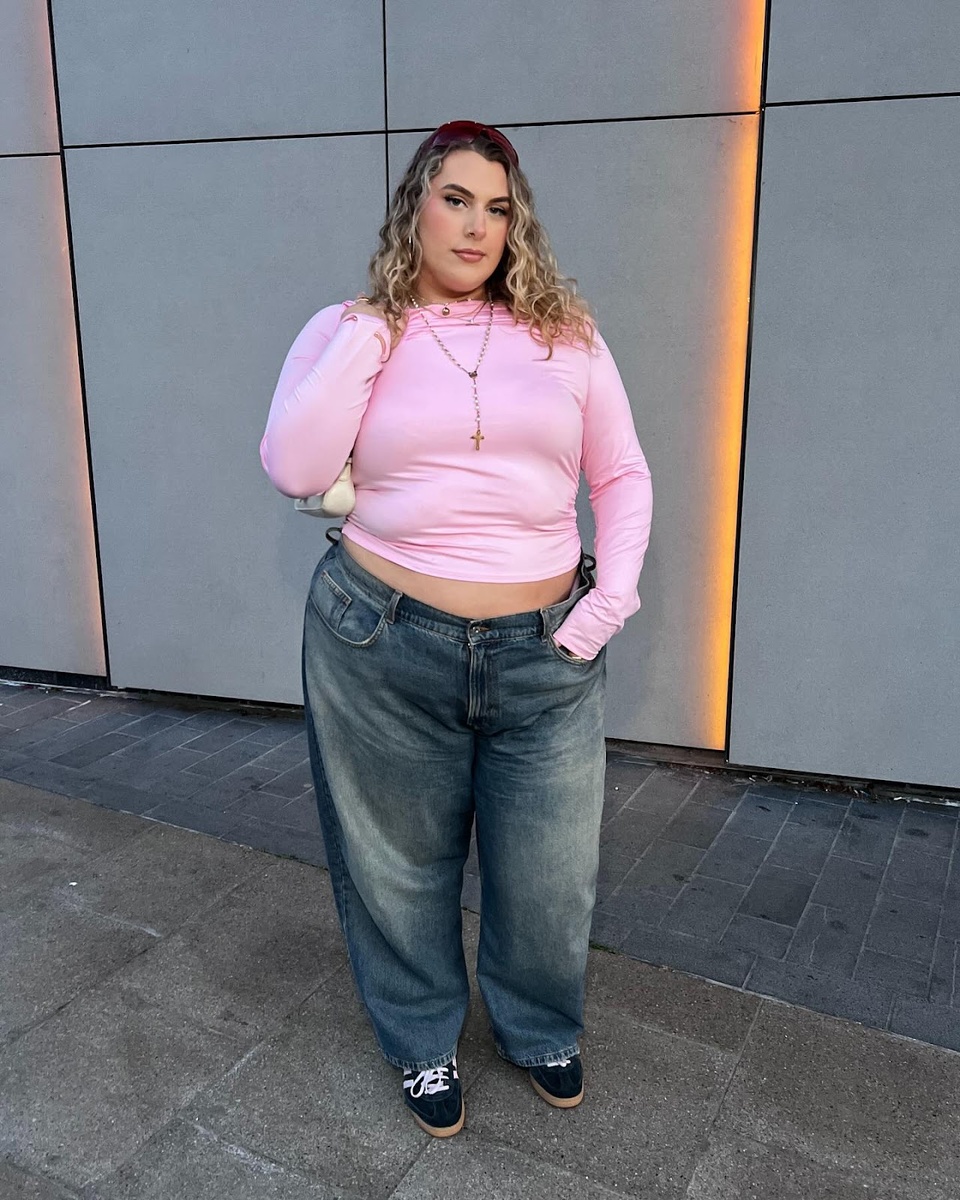 Для полной фигуры более комплементарны модели из плотного денима без облегания. А вот такие джинсы в обтяг лучше заменить, потому что они действительно подчёркивают каждую складочку и рельеф тела.