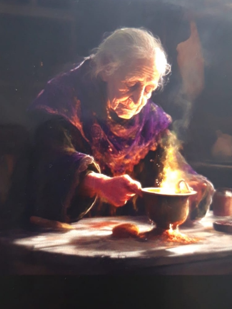 Родители поблагодарили и зашли в дом , в комнате сидела старушка небольшого роста , сухонькая и в платке. На вид настоящая деревенская знахарка или травница.