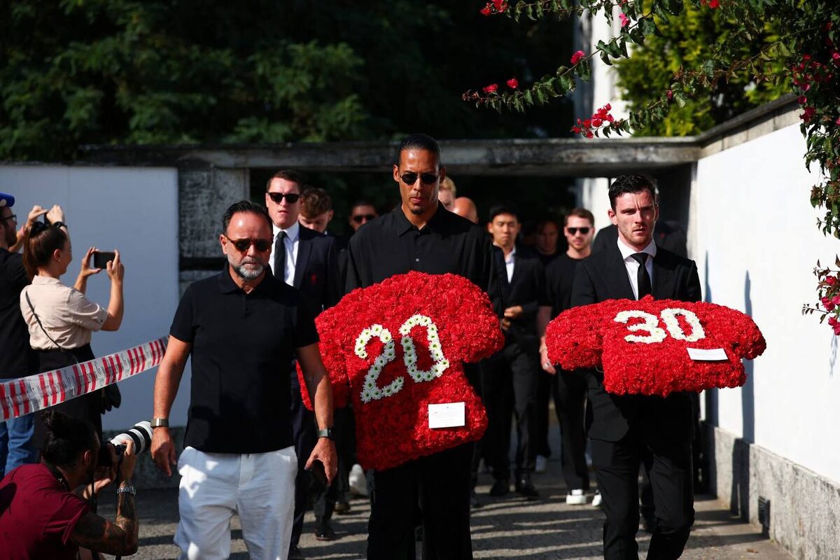 ❤️🩹 Тяжёлые кадры... В родном для Диогу Жоты и его брата Андре да Силвы городе Гондомар прошли похороны футболистов Траурную церемонию посетили родственники погибших, а также их друзья и товарищи по команде. Вирджил ван Дейк, Эндрю Робертсон, Джордан Хендерсон, Фабиньо, Тиаго Алькантара, Руй Патрисиу, Бернарду Силва, Бруну Фернандеш, Жоау Феликс, Жозе Фонте, Ренату Вейга, Рикарду — лишь часть из тех, кто прибыл попрощаться со спортсменами. Добавим, что ван Дейк нёс венок с 20-м номером Жоты, а Робертсон — с 30-м номером Силвы. Более того, лучший друг Диого Рубен Невеш, а также Жоау Канселу прибыли на церемонию из США, где ещё 15 часов назад в составе «Аль-Хиляля» принимали участие в матче клубного чемпионата мира. @russian_rt_sport