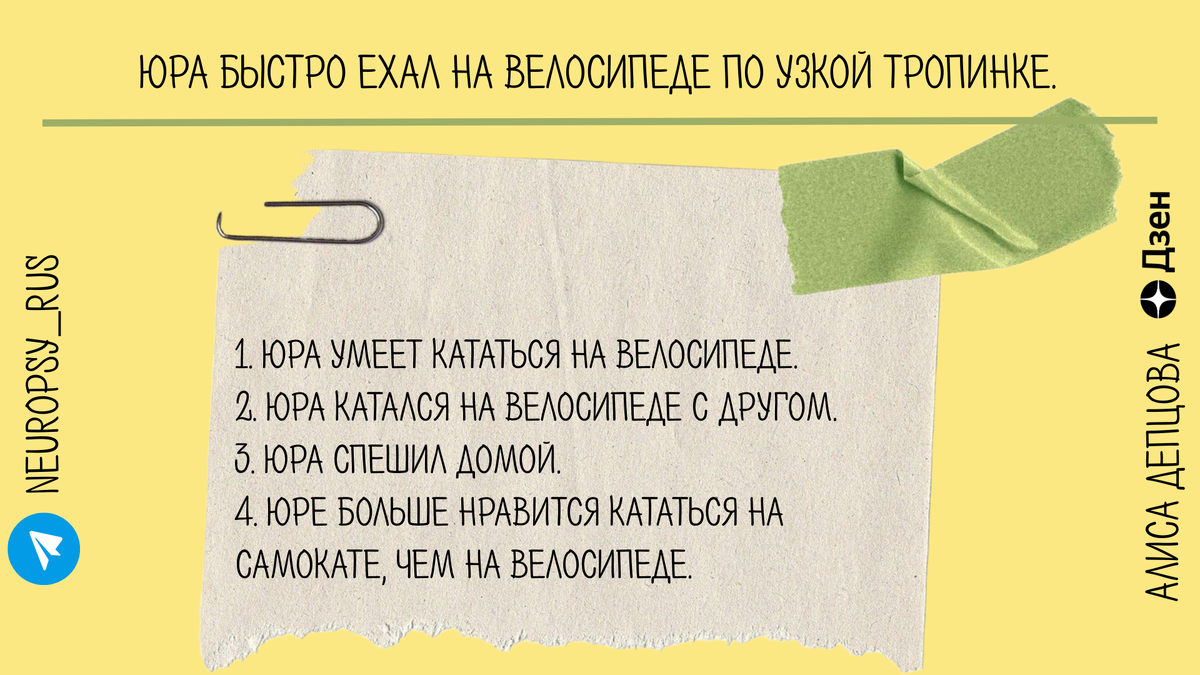 Умение делать выводы - один из "кирпичиков" в стене критического мышления. Формировать это умение нужно со старшего дошкольного возраста. В этой статье я поделюсь полезным упражнением. Читаем предложение. Сегодня Соне исполнилось 6 лет. Далее читаем предложенный вывод. 1. Ещё вчера Соне было 5 лет. Обсуждаем, является ли он точным и верным или относится к "додумкам". Если ребёнок не видит разницы, спросите: Если именно сегодня Соне исполнилось 6 лет, то вчера ей было 5. Даже если Соня родилась 29 февраля. Это точный вывод. 2. Соня получила на праздник то, что хотела - куклу. Может быть, да, может, нет. В предложении не говорится о том, какой подарок Соня хотела получить, а какой получила на самом деле. Это "додумка". 3. Мама Сони испекла клубничный пирог. Такой информации предложение не содержит - "додумка". 4. День Рождения Сони в августе. "Додумка". Больше аналогичных заданий в карусели 👇 Усложняем задачу - предлагаем анализировать выводы после прочтения отрывка текста.