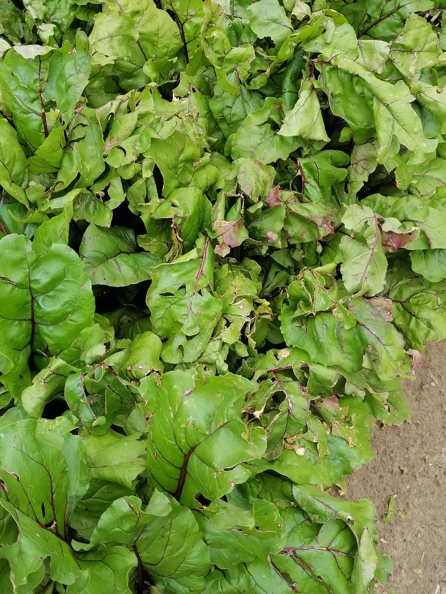 А там после недавнего града есть некоторый урон. Вот, например, свёкла пострадала.