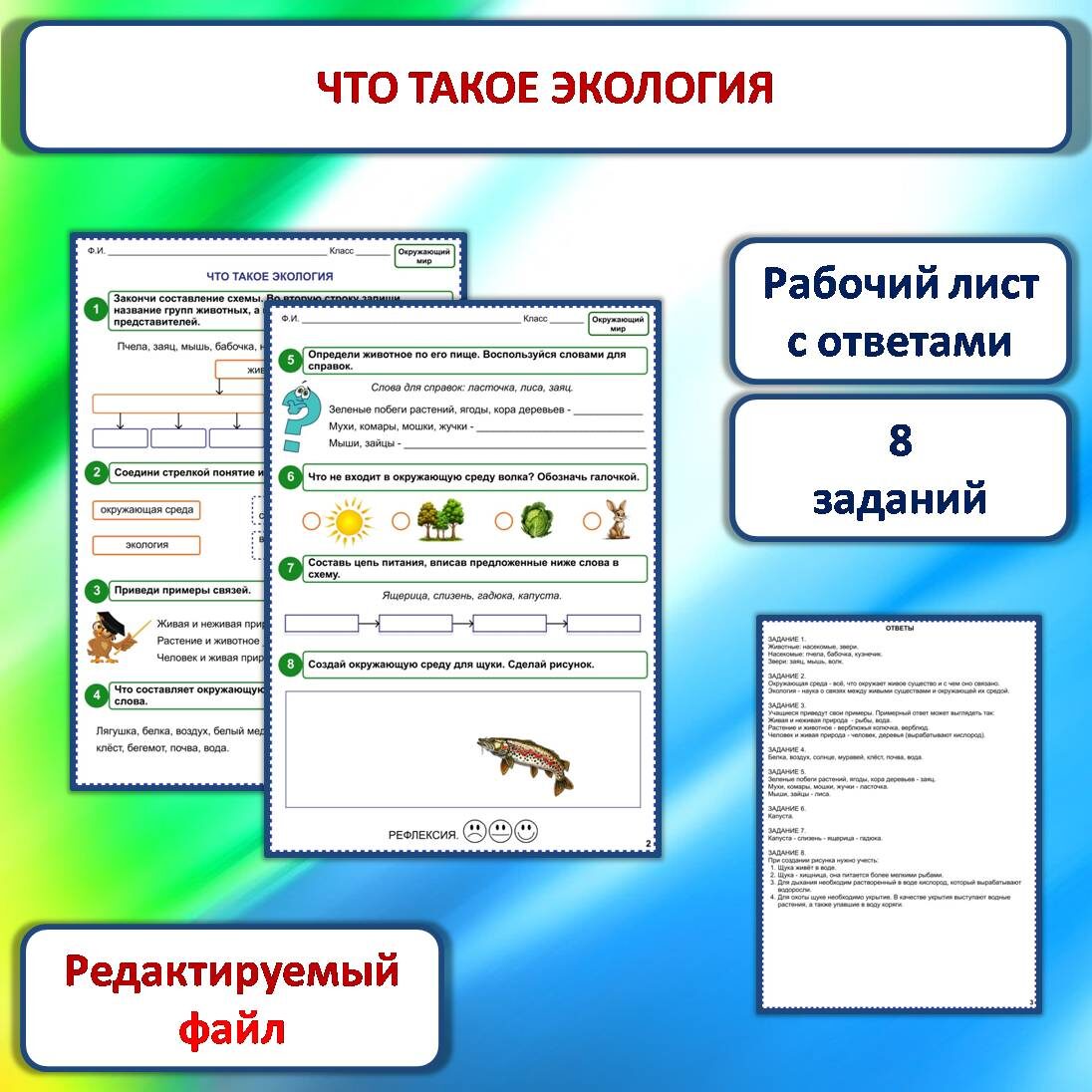 Рабочий лист «Что такое экология» к уроку окружающего мира в 3 классе.