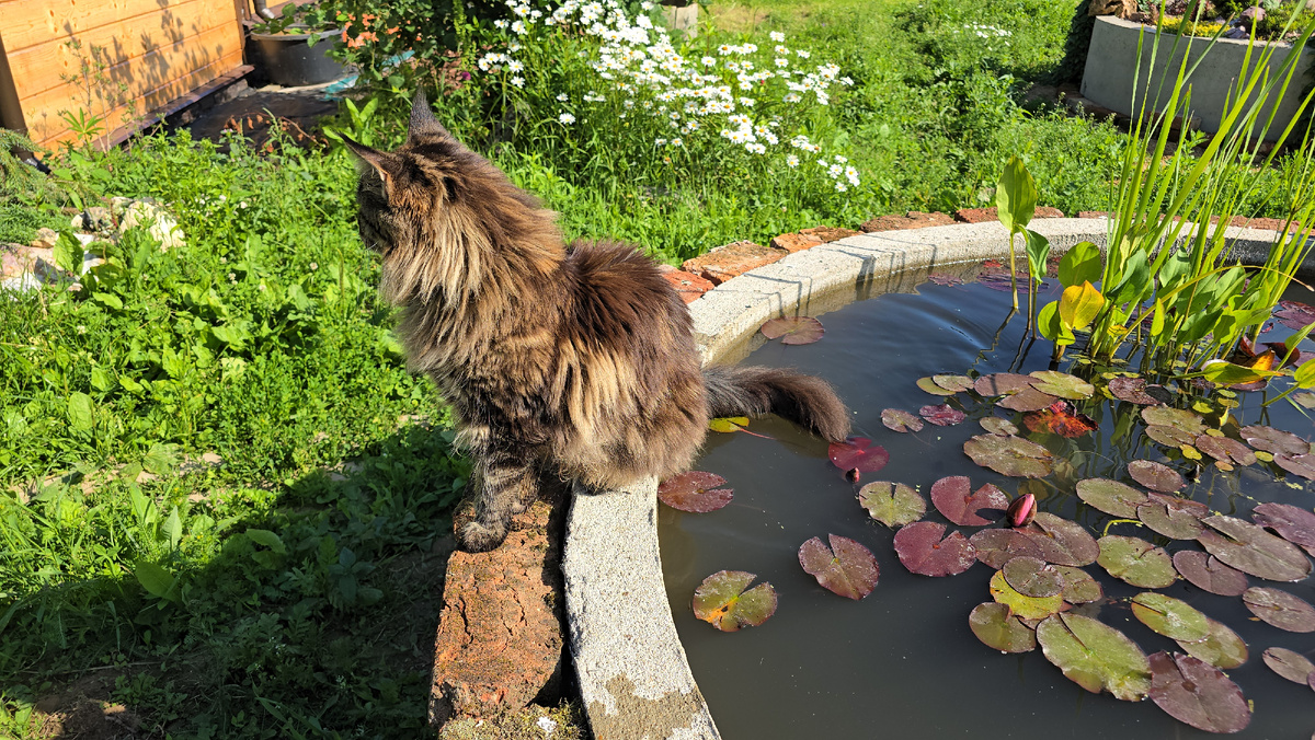 У Пса Кубика просто праздник какой-то! Кошка Морошка "ловит" рыбов в пруду. Треугольный кот приехал!