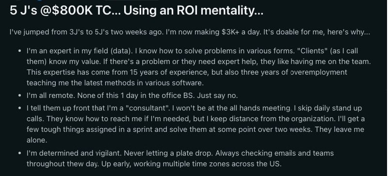 Парень с Reddit крутит пять удалёнок сразу и гребёт $3000 в день — за год набегает $800к. Как не сгореть? У него есть свой чек-лист. Никаких созвонов, офисов и обязаловок — только формат «консультанта», задачи берёт на минималках, не парится и не задерживается там, где становится напряг. Главный принцип: не перерабатывать, не выгорать, активно юзать нейросети и продавать свой опыт дорого. Берём на заметку и кайфуем от работы 😎 Подробнее: https://hard-tm.su/threads/99945/ 🕹HARD-TM — Подписаться