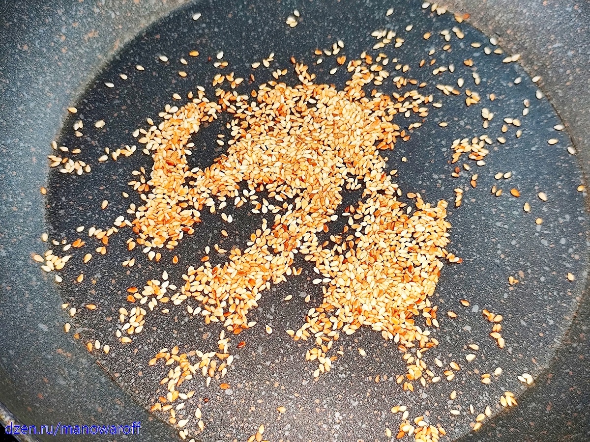 Сегодня будем готовить простенькое, но вкусненькое блюдо современной южнокорейской кухни. Из экзотических ингредиентов в нем только паста Кочудян, но ее без проблем можно купить на маркетплейсах. Ингредиенты: Для начала вынимаем яйца из холодильника и ждем, пока они согреются до комнатной температуры. Затем кипятим в кастрюле воду и аккуратно кладем туда яйца (лучше при помощи ложки). Засекаем 7 минут (это для яиц категории С0, для более мелких время сокращаем на 1 минуту за одну категорию). В результате белок сварится, а желток должен остаться жидковатым. Сливаем горячую воду, заливаем холодную и оставляем яйца остывать. После чего чистим их. Пока яйца варятся/охлаждаются поджариваем на сухой сковородке кунжут, пока он не приобретет коричневатый оттенок. Берем мисочку и высыпаем кунжут в нее. Туда же добавляем все остальные ингредиенты (чеснок давим на прессе, лук режем колечками). Перемешиваем. Если смесь получилась слишком густой, то добавляем чуток воды (консистенция должна быть пр