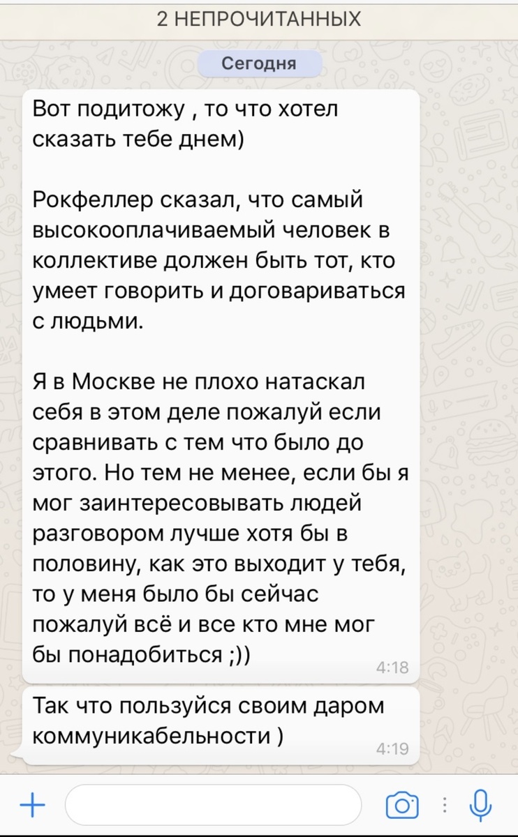 Так что под конец снова предлагаю вам еще раз вспомнить, а чей голос всегда остается с вами, когда вам трудно. Кого вы можете вспомнить, чтобы его голос поддерживал вас в вашей голове, когда это необходимо. Проведите “ревизию” всей своей жизни и выпишите каждого, кто видел в вас силу и потенциал. И держите эти моменты в голове, пока сами в себя не поверите. Не веришь в себя сам, так поверь другим!