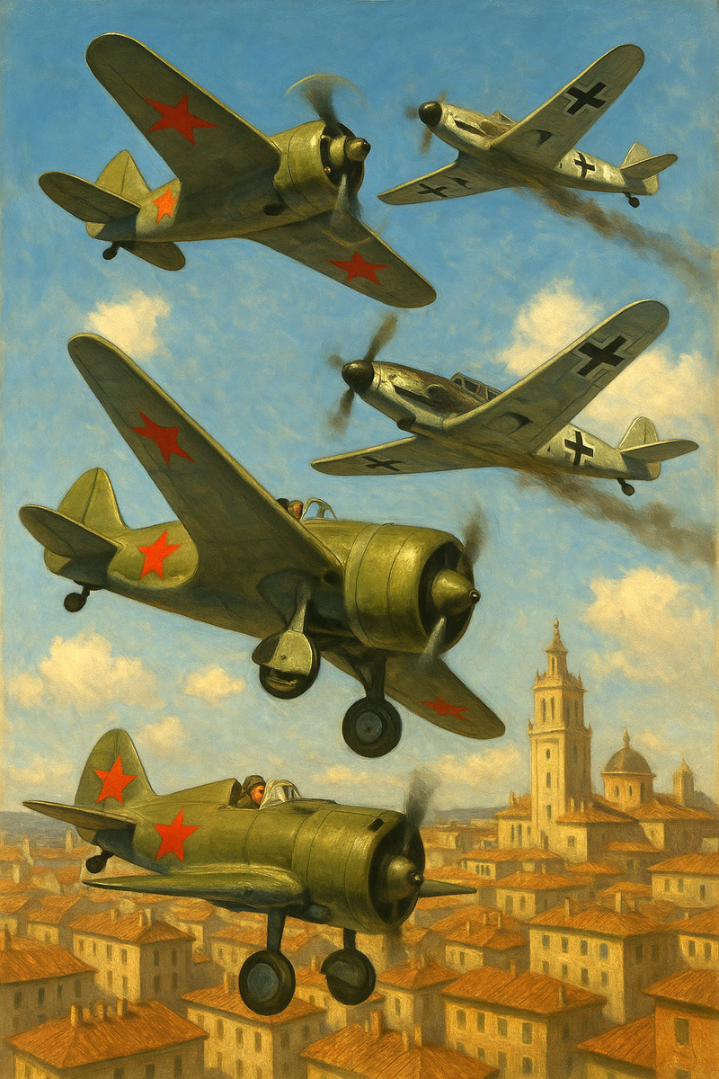 Журналист Михаил Кольцов, влюблённый в авиацию и прославивший её своими статьями, с болью рассказывал мне о превосходстве немецких самолётов в небе Испании. Он искренне верил в силу нашей авиации и тяжело переживал разочарование, повторяя с недоумением: «Как же так? „Выше всех, дальше всех, быстрее всех“ – и вдруг?..» В своём «Испанском дневнике» Кольцов описал атмосферу войны, подвиги советских лётчиков и слова республиканского генерала, признавшего, что им первыми пришлось столкнуться с передовой фашистской техникой, против которой бессильны были даже лучшие авиационные армии Европы.
