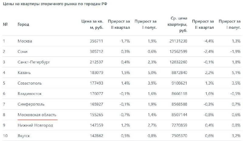 Цены на вторичные квартиры в Подмосковье за первое полугодие 2025-го подросли на 1,4% Стоимость 1 кв. метра в среднем теперь составляет 155 265 рублей. При этом цена квартиры — 8 507 144 рубля, а её среднестатистический метраж — 54,8 кв. м. За полгода средняя цена предложения в общем по городам России показала положительный прирост: +2%. Однако эксперты отмечают, что по сравнению с прошлым годом активности на рынке поубавилось. Из-за того, что ипотека подорожала еще сильнее, многие собственники квартир сняли свои объекты с продажи, чтобы сдавать их в аренду. В результате предложение на вторичном рынке «усохло» на 23%. Однако этот же фактор удерживает цены от падения, так как поддерживается баланс спроса и предложения.
