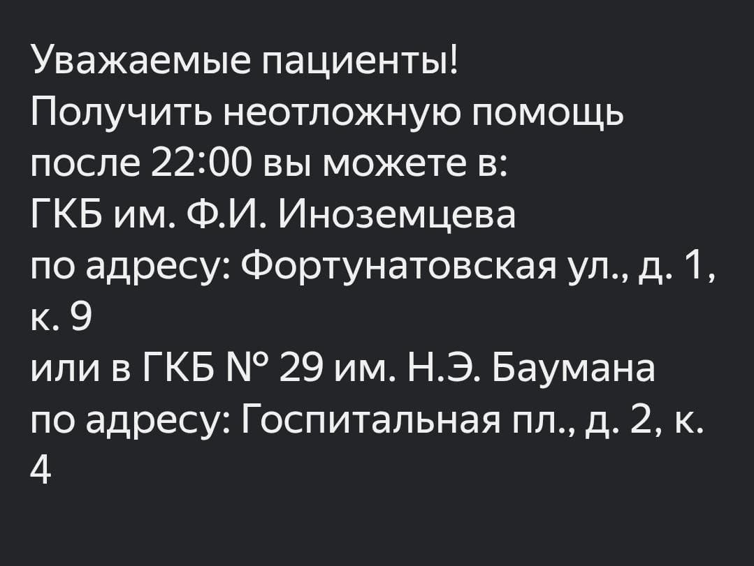 ✏️ Подслушано в Гольяново: 🏥 Травмпункты Восточного Измайлово перестают работать круглосуточно