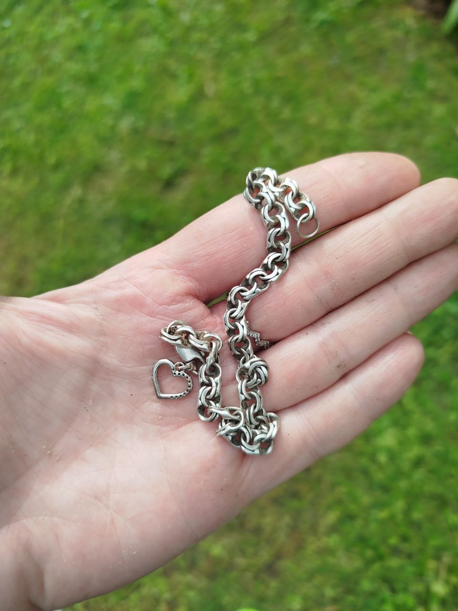 В прошлые выходные я потеряла на даче браслет. Дешёвый серебряный браслетик. Но любимый. И кулончик "сердечко" на нем был дорогим моему сердцу. Заметила не сразу. В понедельник вела консультацию, сидела с клиенткой в кабинете, случайно потрогала себя за руку, и поняла, что браслета нет. На секунду потеряла нить разговора от эмоций - но сразу взяла себя в руки. После консультации стала думать, где могла потерять. Поняла, что скорее всего на даче. Либо в огороде, в парнике, либо в кровати, либо в лес ходила, об ветку зацепила, сорвала. Сегодня приехала на дачу. Всю постель перерыла, парник просмотрела, по грядкам пробежалась - нет нигде 😢 Ну, думаю, наверное когда в лес ходила потеряла. Туда искать, конечно, не пойду. Уже приняла почти эту мысль, что с браслетиком придется распрощаться. Пошла гулять с собакой. Метров 500 от дома отошла. Смотрю - моя собака стоит чего-то нюхает на дороге в траве. Фу! Фу, говорю (любит он дохлых лягушек вынюхивать)) - не отходит. Подошла поближе, смотр