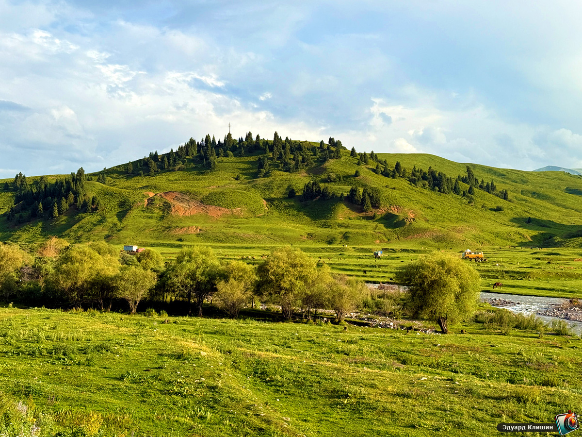 С начала июля наша дружная команда Экспедиции «Путешествие в Сердце Евразии» (@hieurasia) переместилась в невероятно дружелюбный и душевный Кыргызстан, который особенно удивил своей природой. Представьте – зеленая трава, синее небо, свежайший воздух, а еще тишина и спокойствие. Идеальная атмосфера, чтобы перезагрузиться и набраться сил. Первые живописные пейзажи Кыргызстана мы увидели в перспективном туристическом комплексе «Каркыра» в Тюпском районе Иссык-Кульской области. Здесь мы полюбовались горными видами, отведали вкуснейший плов, местную выпечку и сочные фрукты, угостились ароматным чаем, поездили по горам на джипах и даже покатались на лошадях! Искренне хочу сказать спасибо за такой теплый прием: настоящее кыргызское гостеприимство. Строительство туристического комплекса пока только набирает обороты. Но я даже не сомневаюсь, что уже через пару-тройку лет «Каркыра» станет новым центром притяжения путешественников со всего мира. Уже сейчас он позиционируется не просто, как зимний