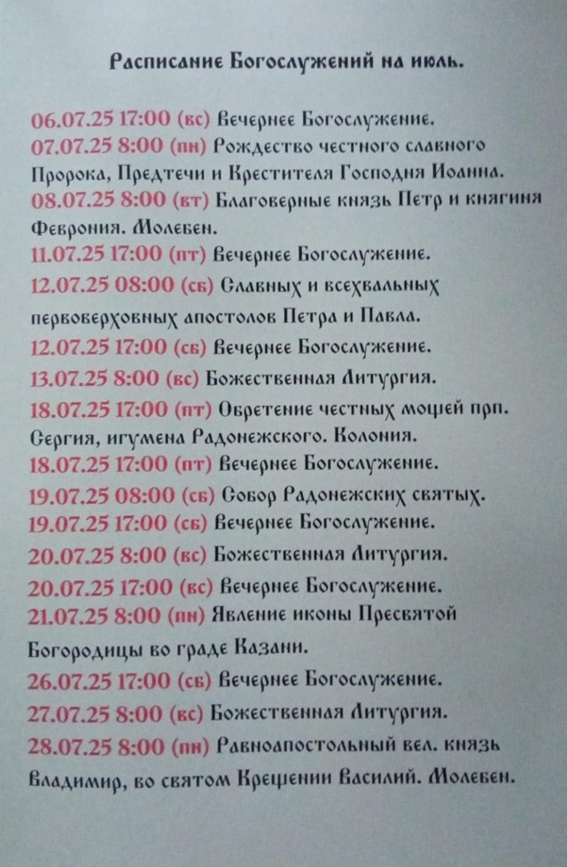 Расписание на июль 🏵 🐝