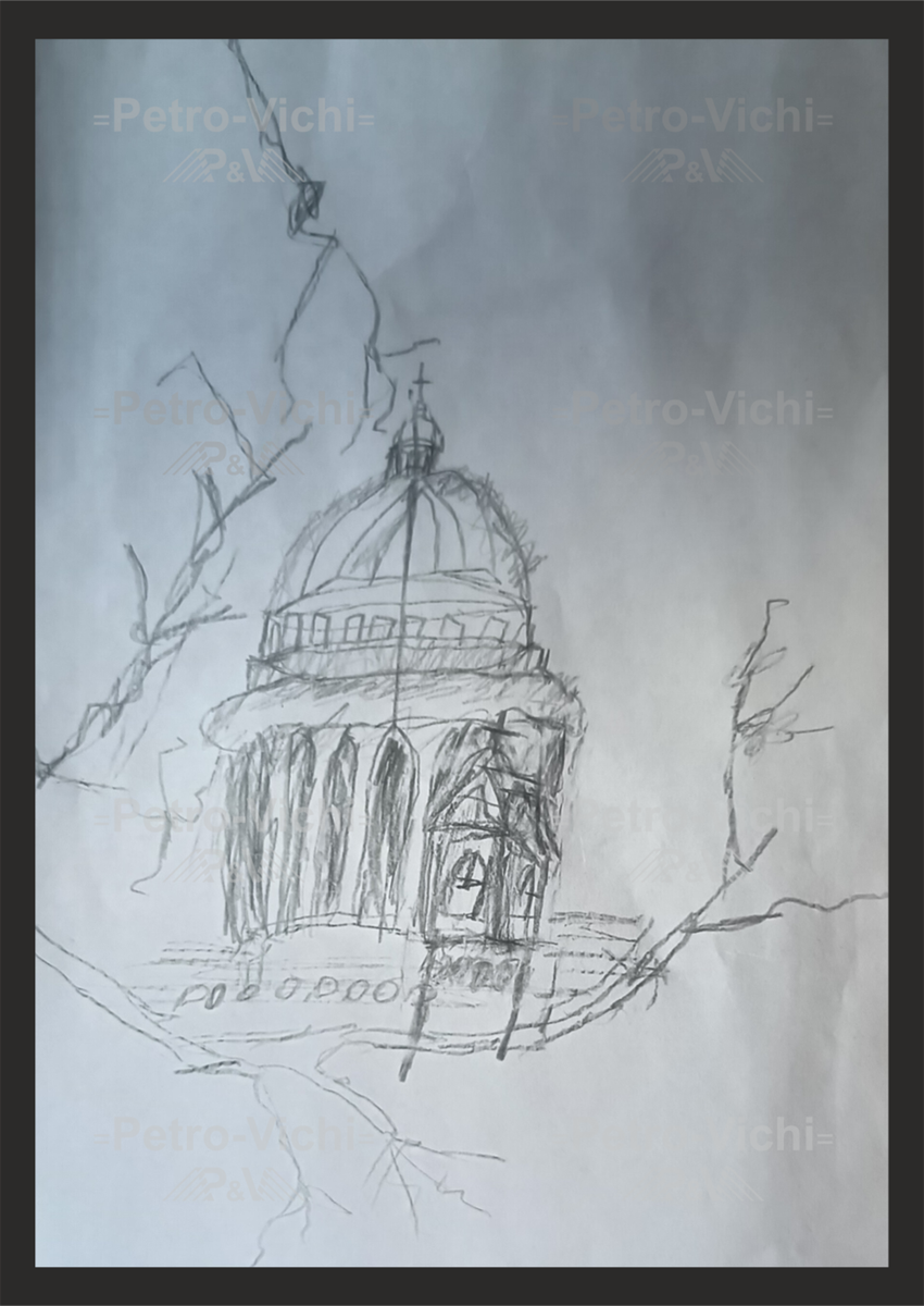 Этот рисунок, выполненный нашим восьмилетним автором, действительно впечатляет своей простотой и выразительностью. Автор использовал графическую технику, чтобы передать свои впечатления от Исаакиевского собора. Линии карандаша четкие и уверенные, что создает ощущение силы и величия здания. Ветки деревьев, добавленные для создания перспективы, придают рисунку глубину и объем. Они словно обрамляют собор, подчеркивая его центральное положение в композиции. Это решение показывает, что ребенок не только заметил детали здания, но и смог передать их в своем творчестве. Простота и четкость деталей, соединенные воедино, создают гармоничное и впечатляющее изображение. Этот рисунок демонстрирует, как дети могут видеть мир по-своему, замечая и передавая то, что взрослые могут упустить из виду.