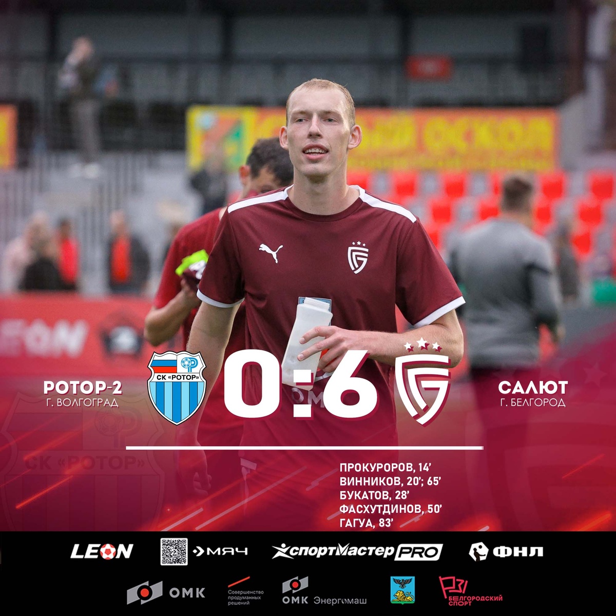Дубль на счету Ильи Винникова, ещё по голу забили Арсений Прокуроров, Станислав Букатов, Владислав Фасхутдинов и Давид Гагуа.