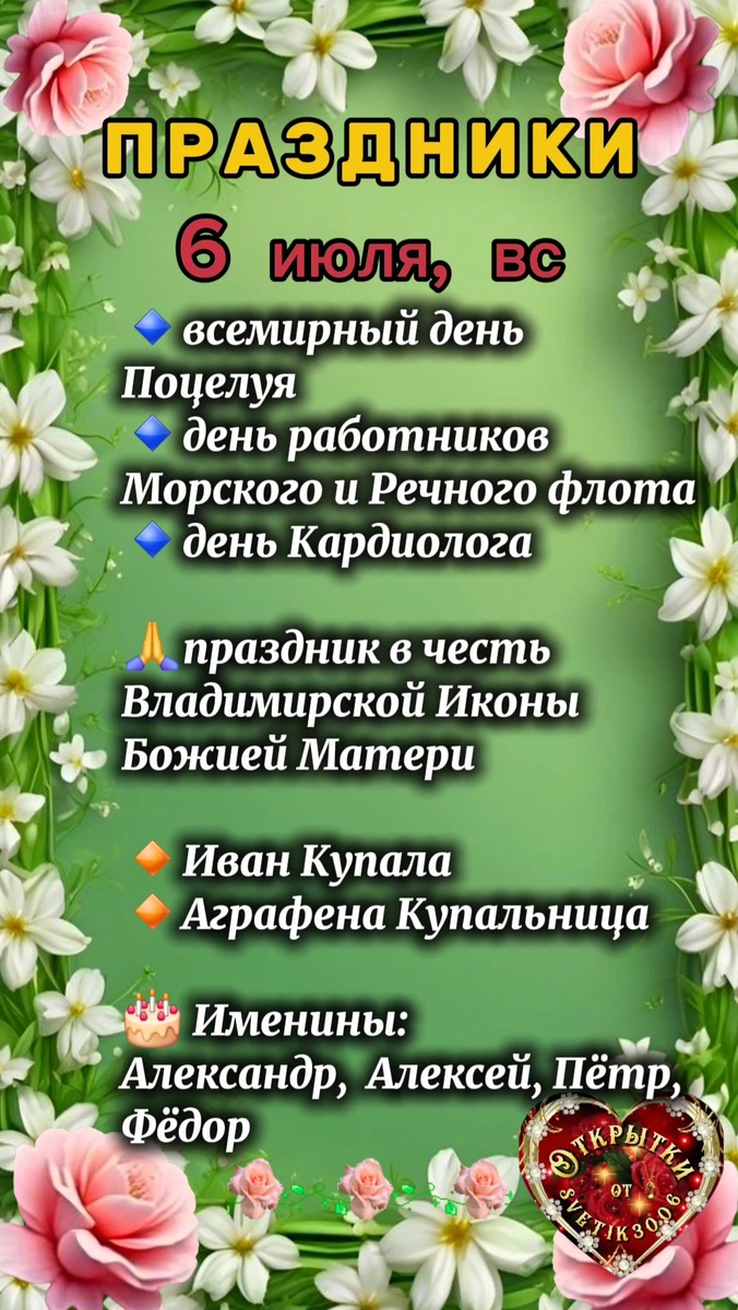 Праздники 6 июля.