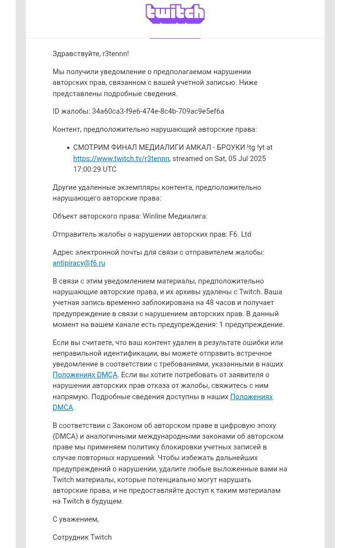 Посмотрел финал на стриме, отлетел на 48 часов 😄