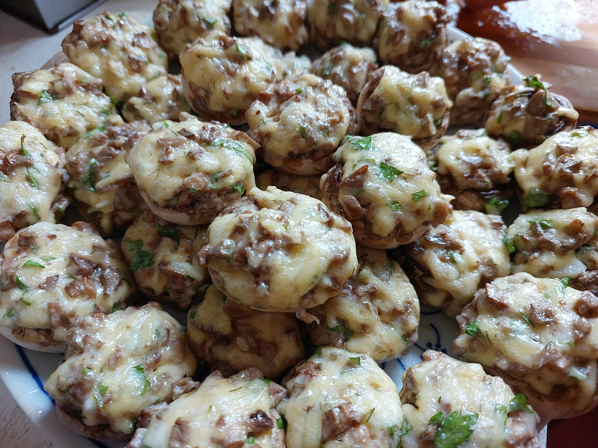 Сегодня сделала шампиньоны в духовке – ушли со стола мгновенно! 🌿 Что нужно: 🍄 Шампиньоны – 1 кг 🧀 Сыр – 100 г (натереть) 🧄 Чеснок – 2 зубчика 🥄 Майонез (у меня домашний) – 2 ст.л. 🌿 Зелень – по вкусу 🧂 Соль 📝 Как готовить: 1️⃣ Грибы помыть, почистить, отделить шляпки от ножек 2️⃣ Ножки мелко порезать 3️⃣ Добавить к ним натёртый сыр, чеснок, зелень, майонез, соль 4️⃣ Хорошо перемешать 5️⃣ Заполнить этой начинкой шляпки 6️⃣ Выложить на пергамент и запекать в духовке 20 минут (при ~180–200°C) ✨ Очень вкусно как горячая закуска или гарнир.