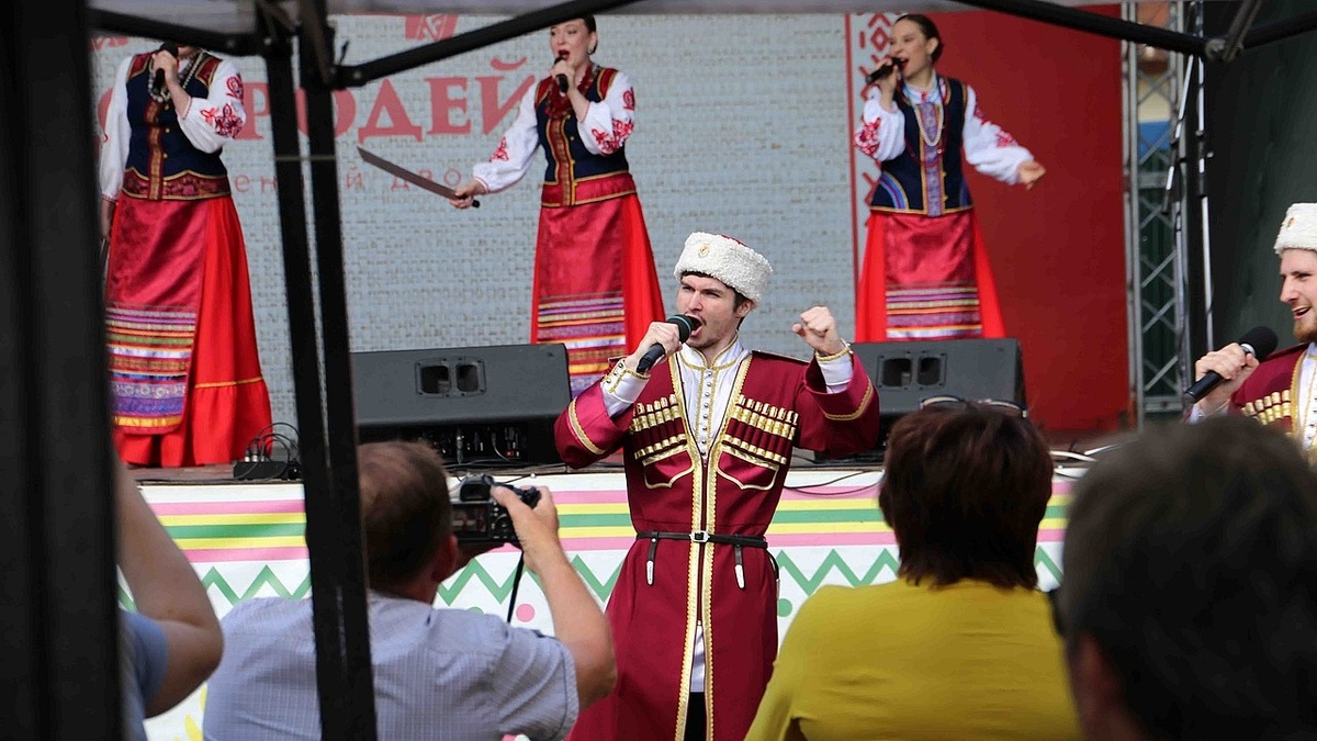 В субботу, 5 июля, ремесленный двор «Добродей» превратился в казачью станицу – здесь прошел фестиваль казачьей культуры «День иконы Николы Тульского». Праздник входит в программу XIХ Межрегионального фестиваля национальных культур «Страна в миниатюре» и культурно-просветительского проекта «Музейное лето в Туле-2025». От лица губернатора Дмитрия Миляева участников и гостей фестиваля поприветствовала Ольга Гремякова, заместитель председателя правительства и министр культуры и туризма Тульской области. Она подчеркнула, что главная цель мероприятия — сохранение и популяризация уникальной казачьей культуры. Алексей Альховик, окружной атаман Западного окружного казачьего общества войскового казачьего общества «Центральное казачье войско», напомнил о том, что праздник посвящён важному событию в истории России, когда горстка воинов и горожан отразили нападение войск хана Девлет Гирея от стен Тульского кремля. Ольга Гремякова и Елена Арбекова, директор Объединения центров развития культуры, пол