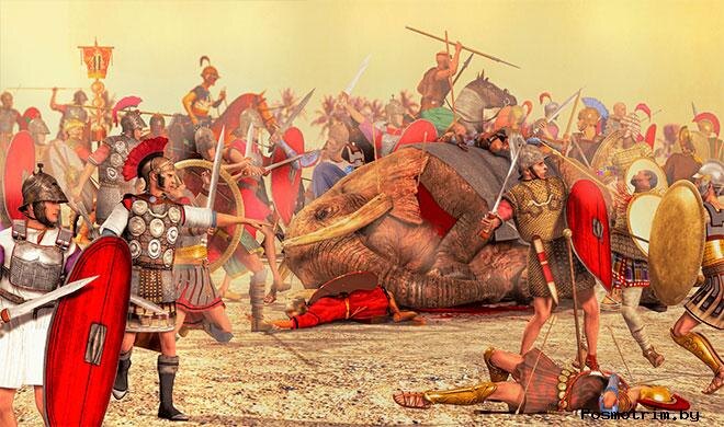 Во время перехода полководец потерял большую часть войска. В битвах при Тицин, Требия (218г. до н.э.) и при Тразименском озере (217г. до н.э.) Римская армия потерпела поражение. Сенат назначили полководца Квинта Фабия Максима диктатором. Фабий повсюду следовал за карфагенским войском, но избегал сражения. Такая тактика римлян изматывала войско Ганнибала. За что Фабий получил прозвище Кунктатор - "Медлитель".