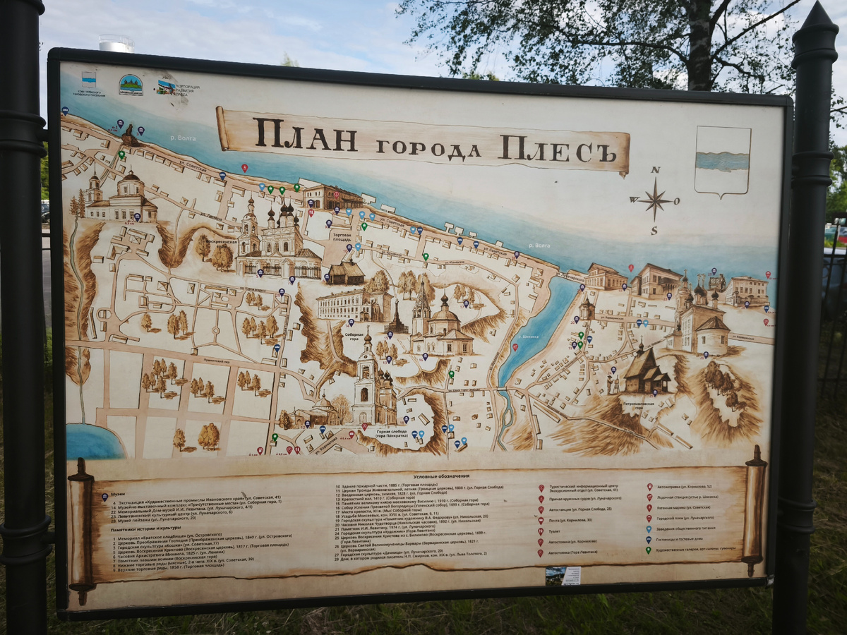 Наконец-то заканчиваю цикл статей про наш мини-отпуск😁 Мы побывали в Ярославле: В Костроме: И третьим городом стал Плёс. Давненько мне хотелось в нем побывать, но специально я не стала ничего о нем читать заранее, чтобы гулять куда глаза глядят, и пусть все будет сюрпризом. Плёс очень маленький, и проезд на машине запрещен, её нужно оставить на парковке перед въездом в город. Проехать можно только местным, либо по каким-то пропускам. Абсолютно правильная мера - при таком количестве туристов и размере города все улицы были бы забиты машинами. Когда мы сюда приехали, я не знала, что оказывается Плёс стал очень модным для посещения, как Суздаль. Видели дорогие машин с московкими номерами)) Да и как я потом почитала, народу там бывает очень много. Для туристов расстарались создать атмосферу: Плёс холмистый, тем и хорош - с возвышенностей открывается шикарный вид. Но мы начали знакомство с городом, спустившись вниз, на набережную. И тут мы вышли к очень симпатичному затону... Такой вид н