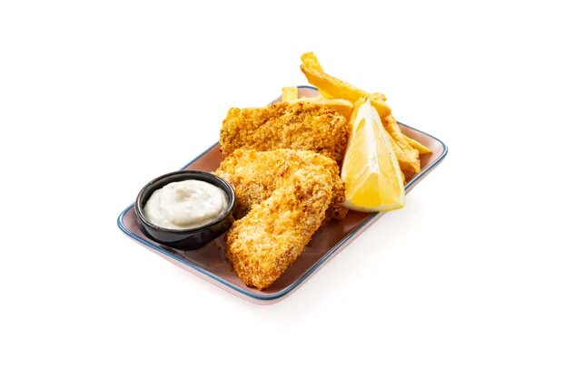 Главное, что отличает достойное исполнение фиш-энд-чипс от недостойного, — не вкус, как может показаться, а легкость. Стоит немного переборщить с маслом, и вместо вызывающего обильное слюноотделение звонкого и румяного кляра вы получите на кусочках рыбного филе унылую резину. Аэрогриль в этом рецепте живет свою лучшую жизнь: обдув горячим воздухом позволяет достичь идеального хруста без злоупотребления жиром. Картошку мы сами не чистили и не резали, а использовали полуфабрикат, и результат приготовления в аэрогриле нас безусловно порадовал. Куриное яйцо 2 штуки Молотый черный перец ¼ чайные ложки Соль ½ чайные ложки Растительное масло по вкусу Лимон по вкусу Пшеничная мука 60 г Паприка 2 чайные ложки Филе пикши 500 г Молотый сушеный чеснок ½ чайные ложки Панировочные сухари панко 100 г Соус тартар по вкусу Картофель фри 400 г 1.Подготовить все ингредиенты. 2.Картофель для фритюра пожарить в аэрогриле на специальном режиме. Готовый картофель посолить и при желании накрыть фольгой, чтоб