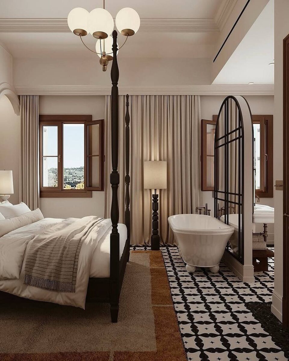 Хотя многие могут сомневаться в этой идее, такой вариант выглядит просто великолепно. Особую привлекательность ему придают продуманная цветовая палитра и тщательно подобранные элементы. А вы что думаете ? Хотели бы себе такую спальню?