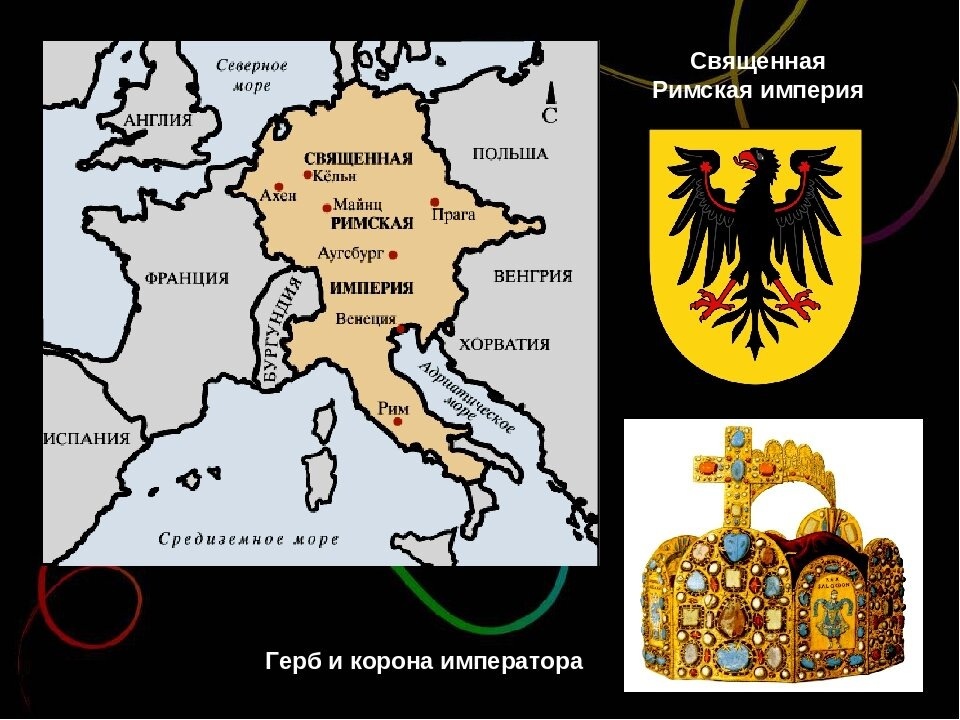 Почему она ТАК называется?! Сейчас разберём всё по косточкам, словам, и попытаемся понять, что за "фрукт" была эта империя) Начнём с конца))) Скорее это было - "объединение". В разные годы в состав Священной Римской империи входили Немецкие княжества, часть Италии, Бургундия, Чехия, Балканские земли. Её столицами были: Рим, Прага, Вена, Ахен. Управление в этой средневековой державе было настолько сложным, что способно напрочь запутать любого человека, особенно, такого непросвещённого, как я))). Империя воспринималась как воплощение царства божьего. И как на небе — один бог, так и на земле должен быть один император. Носитель верхо