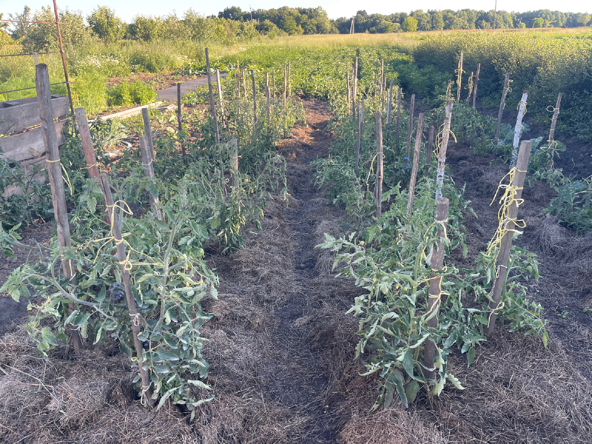 Первое воскресенье июля нступило. Время рубрики Садово-огородная 7-ка. Июль вступил в свои права. На улице потеплело. Но погода никак не желает вести себя прилично. В пятницу резко пришла жара. +30℃ сразу вывалила. А вечером опять пошел дождь. Мои родители скосили траву на сено. Уже две недели лежит на площади. В пятницу обрадовались солнцу и жаре, думали, что к вечеру сено приберут в сарай. Но полил дождь. У нас ливень лил, но без урагана и града. В деревне, где у нас первая дача была, пронеслась настоящая гроза. С громом и молниями. Молния ударила в хозяйственную постройку у сестры мужа. Под крышей сено лежало. Заполыхало и мигом все сгорело. От двух сараев ничего не осталось. Вот такая погода. В других регионах вообще жуть, что творится. В новостях показывали. В пятницу, обрадовавшись хорошей погоде, как начала метаться по огороду. По дождю все никак не могла выбрать время для профилактики фитофторы на томатах. Вот с них и начну воскресную 7-ку. Цель данной рубрики показать без пр