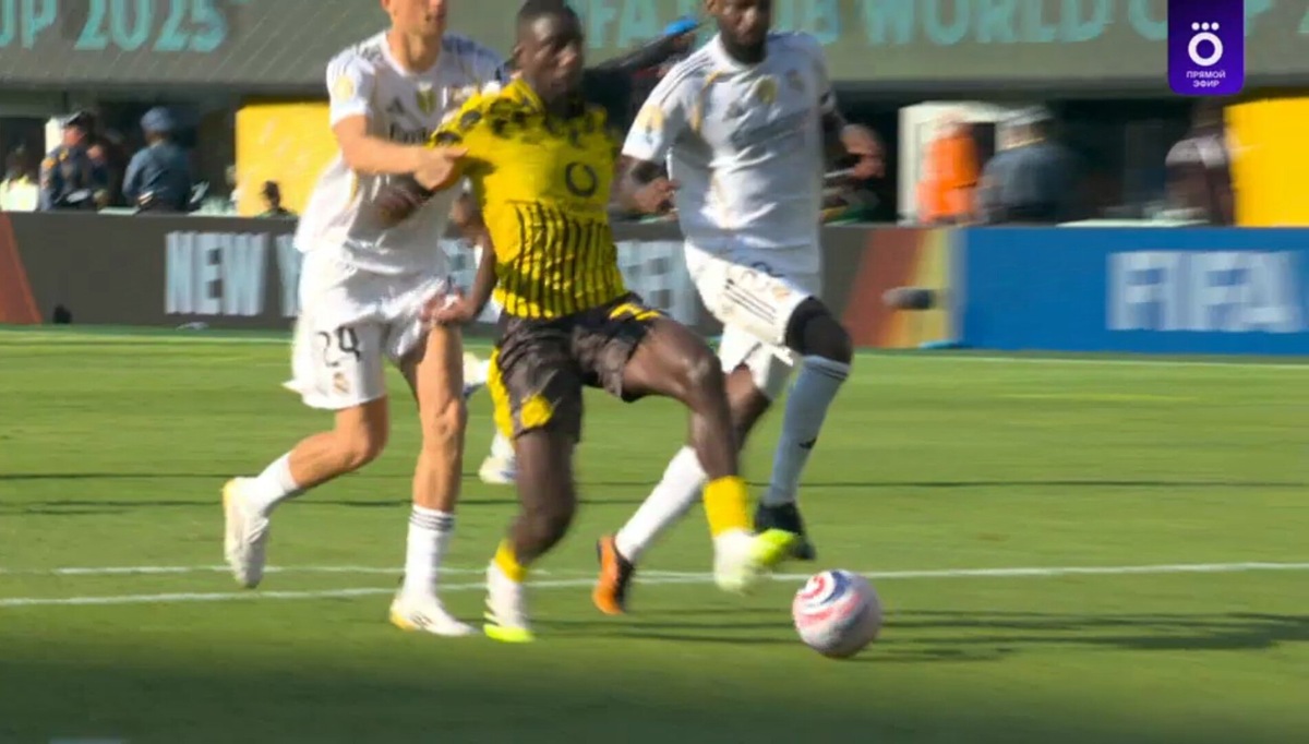 Мадридская команда одержала победу со счетом 3:2 и вышла в полуфинал клубного чемпионата мира, где сыграет с «ПСЖ». На 6-й добавленной ко второму тайму минуте Дин Хейсен в штрафной площади придержал руками Серу Гирасси, выбегавшего с мячом к воротам «Реала», и нападающий дортмундцев упал на газон. Судья Рамон Абатти показал защитнику мадридцев желтую карточку и назначил пенальти. На 98-й минуте матча Гирасси реализовал 11-метровый. Вскоре после гола, сократившего отставание «Боруссии» в счете до минимального, у нее была еще одна возможность забить. Марсель Забитцер получил мяч в районе одиннадцатиметровой отметки и пробил в левый нижний угол. Голкипер Тибо Куртуа парировал удар. Изображение: кадр из трансляции Okko