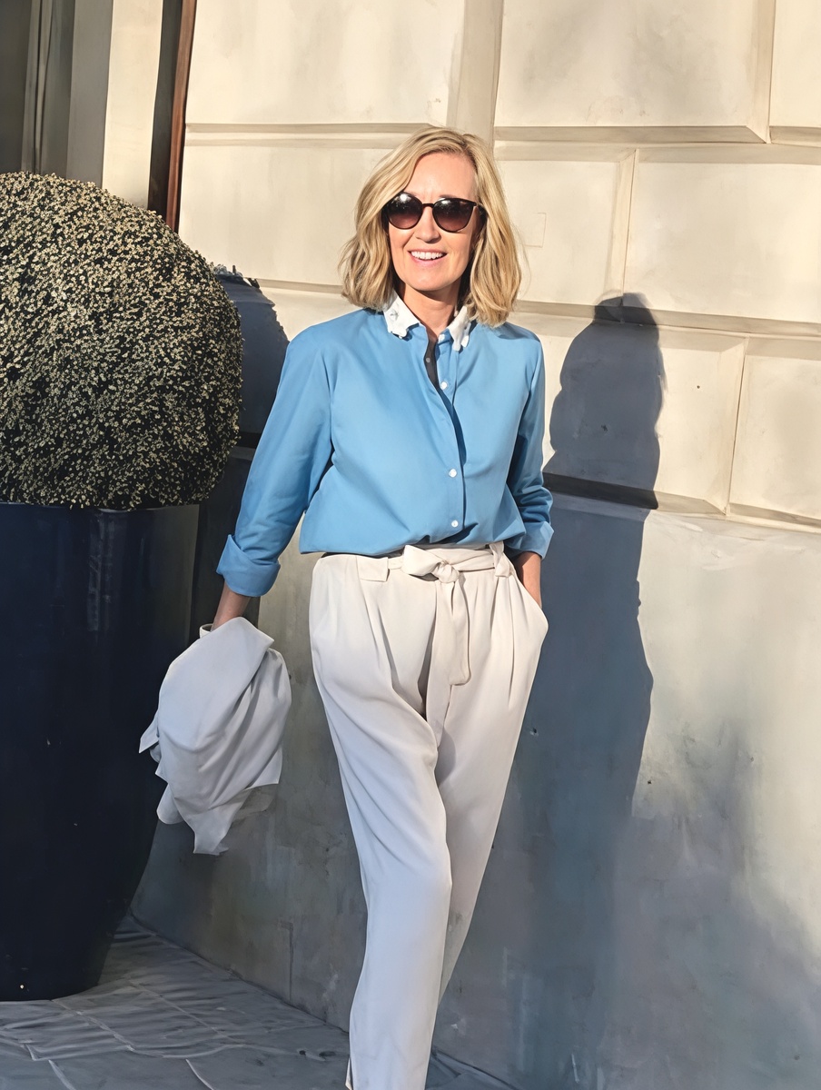 Сижу в кафе, наблюдаю за людьми... И тут появляется она — женщина явно за шестьдесят, но какая! В белых брюках, голубой блузке и коралловых туфлях. Походка уверенная, улыбка искренняя. Знаете, что поразило больше всего? То, как она сочетала вещи. Ни намёка на "возрастные" условности — просто стильная, современная женщина.