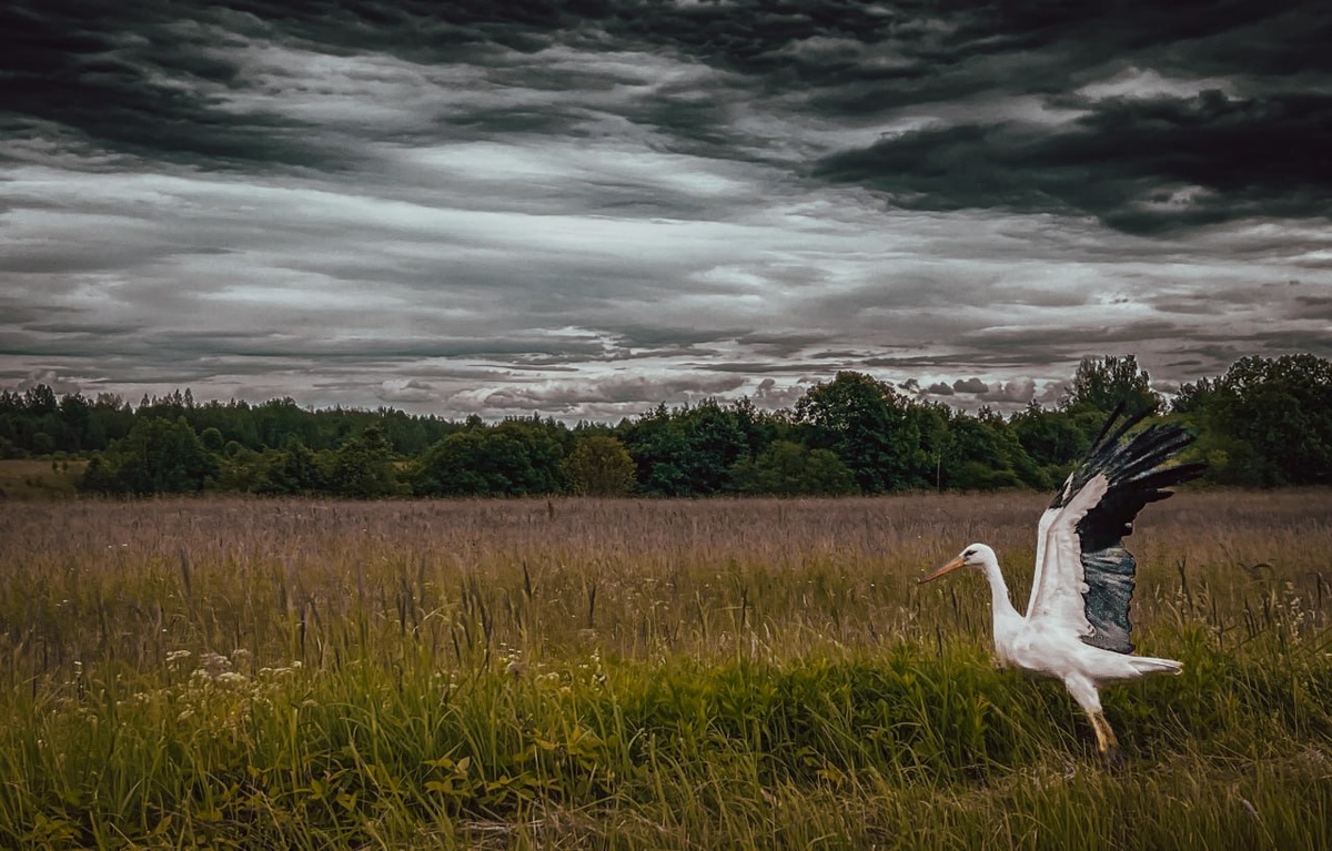 🏞 Красивый и гордый белый аист над лугами Ленобласти