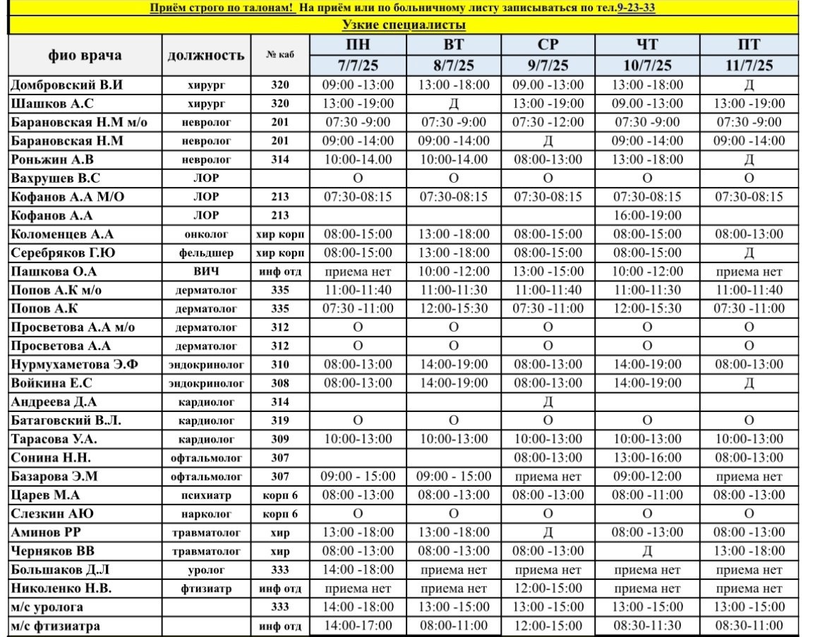 Актуальный график работы врачей с 7 июля