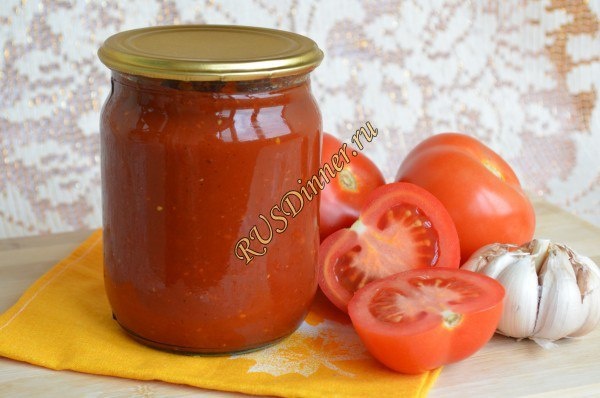 Кетчуп домашний на зиму От автора: Кетчуп получается кисло-сладким, вкусным, густым и насыщенным. Такой кетчуп можно сварить без чеснока, но и можно добавлять разнообразные специи: хнели-сунели, паприку, перец чили, любую зелень, все ваши любимые специи. Из данного количества ингредиентов у меня получилась всего одна баночка 0,5 литра. Ингредиенты: Помидоры - 2500 гр. Лук репчатый - 200 шт. Сахар - 75 гр. (3 ст.л.) Соль - 15 гр. (0,5 ст.л.) Перец черный молотый - 3 гр. (0,5 ч.л.) Чеснок - 3 зуб. Уксусная кислота 70 процентная - 10 мл. (0,5 ст.л.) Источник: https://rusdinner.ru/page/ketchup-domashnij-na-zimu