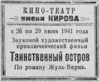 «Таинственный остров», фильм-экранизация одноименного романа Жюля Верна 1941 года, снятый на Одесской киностудии, премьера которого состоялась в мае 1941 года. Режиссёр Эдуард Пенцлин. Авторы сценария Борис Шелонцев и Михаил Калинин. В 1865 году из цитадели рабовладельческого Юга Америки города Ричмонда на воздушном шаре спасается группа смельчаков северян, о том, как они оказываются на необитаемом острове, где у них появляется таинственный покровитель - капитан Немо. Длительность фильма 88 мин.