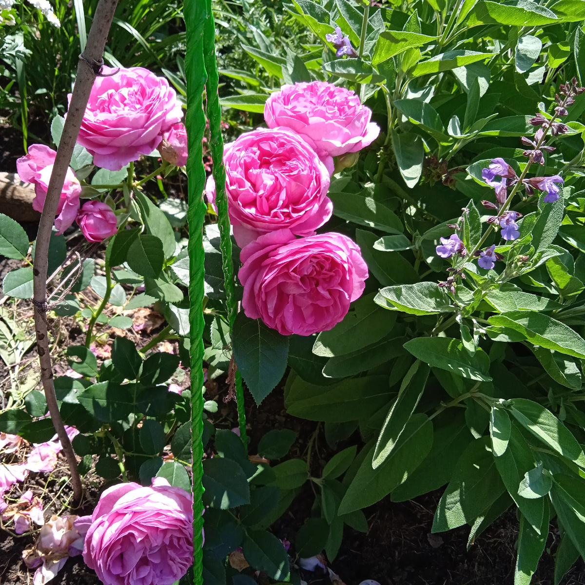 Добрый день, мои дорогие! Я никуда не пропала, просто проблема с техникой. За эти дни, что мы с вами не общались, много дел переделано. Дожди прекратились и вернулась жара. Да, на наши земли много дождя надо. Тут смотрю, аллисум грустный, оказалось он сухой. А я то думала что раз дождь, то и поливать не надо. Теперь работы добавилось, два участка поливаь, а это непросто. Я то свои розы шпарю прямо из колодца, из шланга, а дочкиных принцесс надо теплой водой. Вот вчера дед и пыхтел,таскал лейки. Кто интересовался, как себя чувствует моя новенькая Лилак Топаз после дождя? Скажу честно, дождь не любит. Да и какая роза его любит? Но,после все замечательно, цветет долго и обильно. Чем еще занималась. После дождей, все сильно разрослось. Пришлось многое убрать. Срезала отцветающую матрикарию, оставила только молодежь. Убираю понемногу шалфей, не на месте он. Дед наконец-то скосил лужайку. Там разростается белый клевер, а я и не спорю, пусть растет, поэтому теперь лужайка, а не га