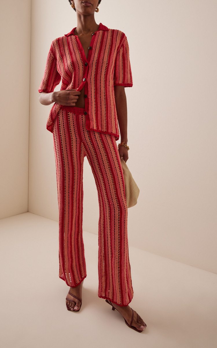 Я всех рада приветствовать на своем канале. Спасибо, что нашли время и заглянули. Вы на канале "Вяжу опять и снова. Вязаномания". У меня своеобразный юбилей на канале: я выпустила 500 публикаций, сегодняшняя статья как раз юбилейная. (Ну если не считать те видео, которые я удалила после изменения условий монетизации и оплаты публикаций) А сегодня мы с вами постараемся прикоснуться к высокой вязаной моде. Тем более вязаные вещи никуда не собираются пропадать с подиумов, а бренды не перестают предлагать нам свои новинки, соревнуясь друг с другом в мастерстве. И начнем мы с костюма от Akoia Swim. Бренд предлагает изделия с продуманным дизайном, чтобы изделие могло подойти для любого типа фигуры. Это стильные модели для любого роста и возраста. Не мы созданы для одежды, а одежда создается для нас. Vercsace выпустил коллекцию La Vacanza, что в переводе с итальянского означает "отпуск", это пляжная одежда для летнего сезона с их фирменным стилем. Костюм состоит из жилета без рукавов плотной