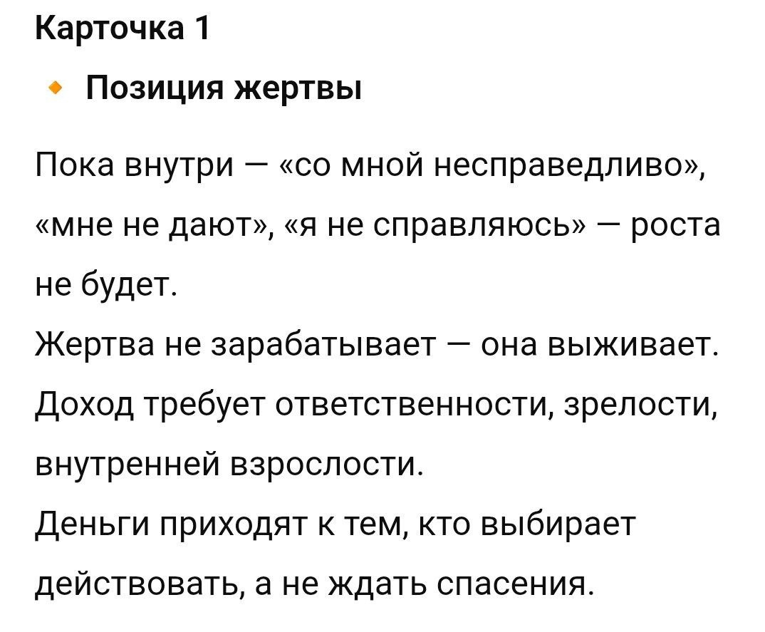 Почему доход не растёт, даже если вы “работаете с энергиями”? 7 причин, которые стоит увидеть. (Смотрите карточки) Эта информация не для всех. Она для тех, кто уже делал многое: ♥️ визуализировал, ♥️ прописывал аффирмации, ♥️ медитировал, ♥️ проводил ритуалы, ♥️«открывал денежный канал»… А доход — всё там же. Или прыгает- то есть, то нет. И вы уже устали. Я пишу это не с «успешной» позиции. Все 7 причин — прожиты мной не в теории. Когда не чувствуешь своей опоры. Ты начинаешь опираться на чужую, внешнюю опору, чужие обещания и веришь во что угодно, только не в себя! Хотите сами управлять своей жизнью? Сохраняйте себе пост и пересылайте кому он сейчас необходим♥️ Хотите убрать причины и начать расти в доходе - ♥️пишите в личку Есть еще одно место по специальному предложению. https://dzen.ru/media/matriccalla/proshlo-uje-polgoda-6863cee541a18d73e7fea914