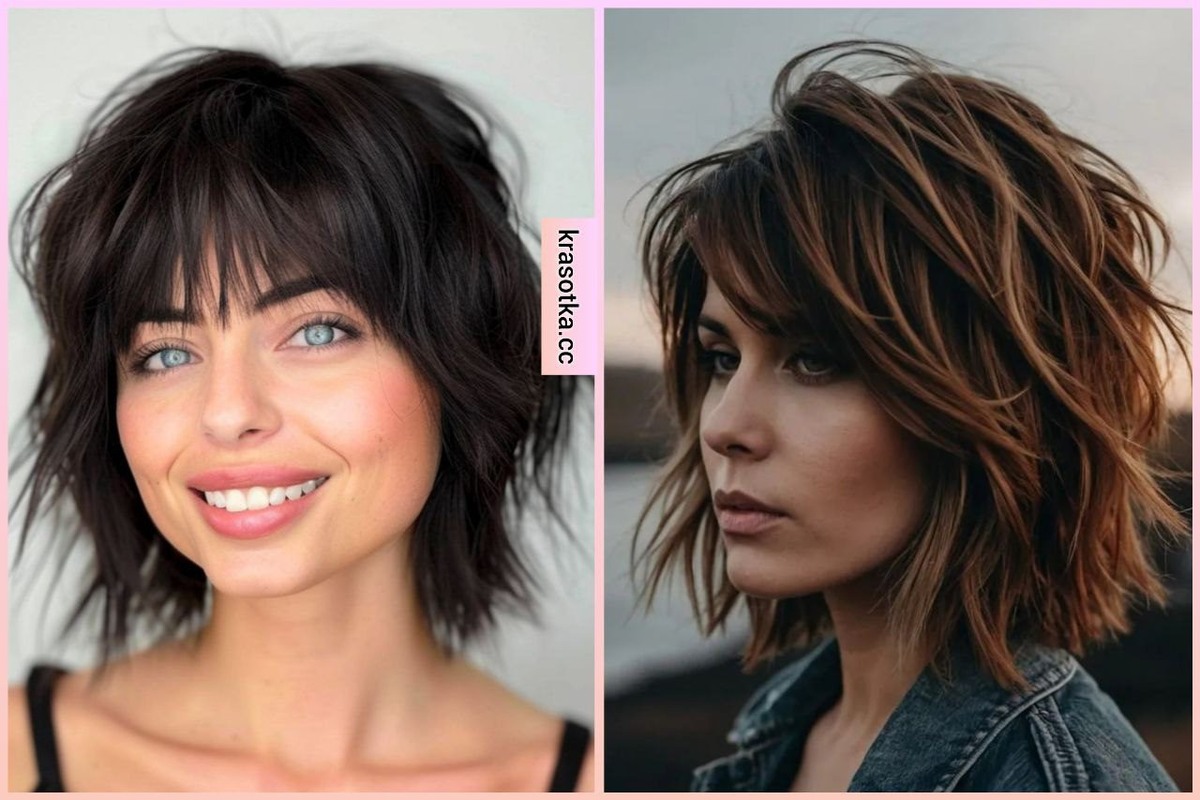 Рваные стрижки на темные волосы 2025: идеи, новинки, фото