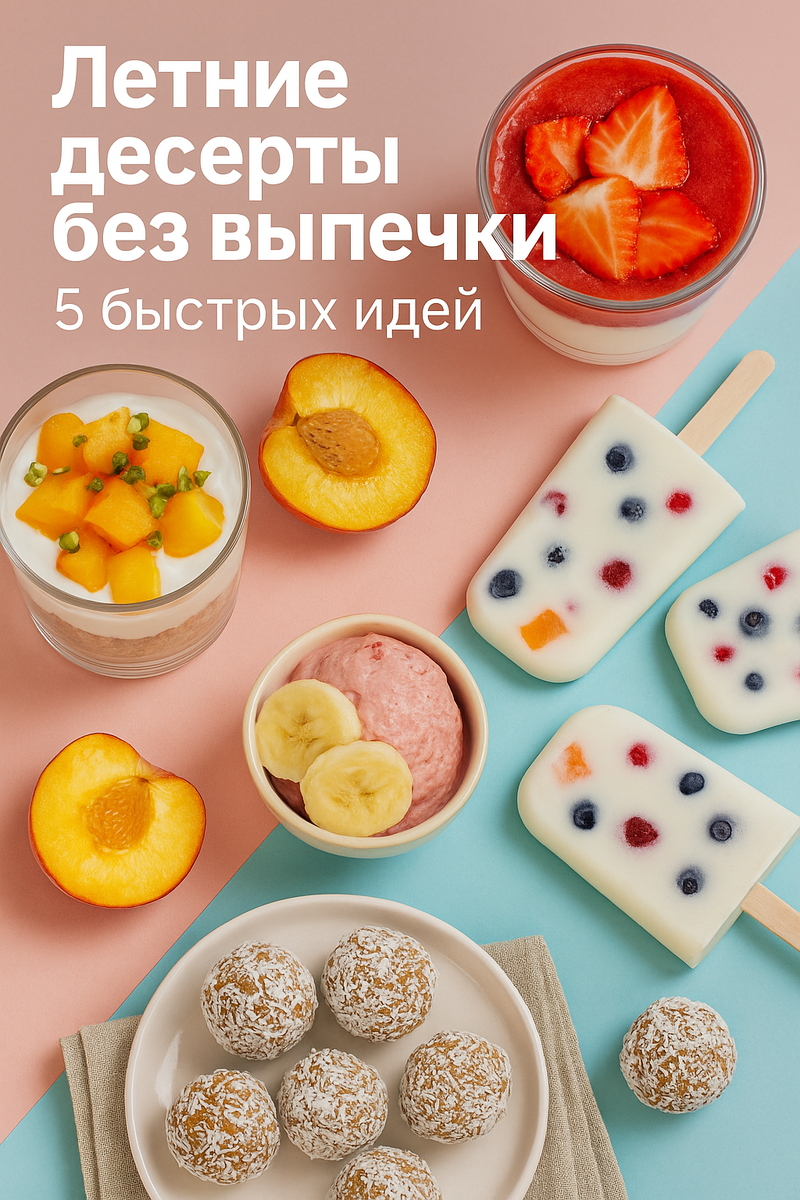 Жара не повод отказываться от сладкого! Но включать духовку в +30 точно никому не хочется. К счастью, есть немало десертов, которые можно приготовить без выпечки — легко, быстро и с летними нотками. В этой статье собрала для вас 5 простых рецептов, которые не потребуют духовки и подойдут даже новичкам на кухне. Почему именно десерты без выпечки? Летом особенно важно не перегружать организм — и кухню — лишним теплом. Десерты без выпечки: По данным кулинарных платформ вроде Tasty и AllRecipes, в летние месяцы запросы на “no bake desserts” вырастают почти вдвое. 🍓 1. Чизкейк в стакане Ингредиенты на 2 порции: Как готовить: